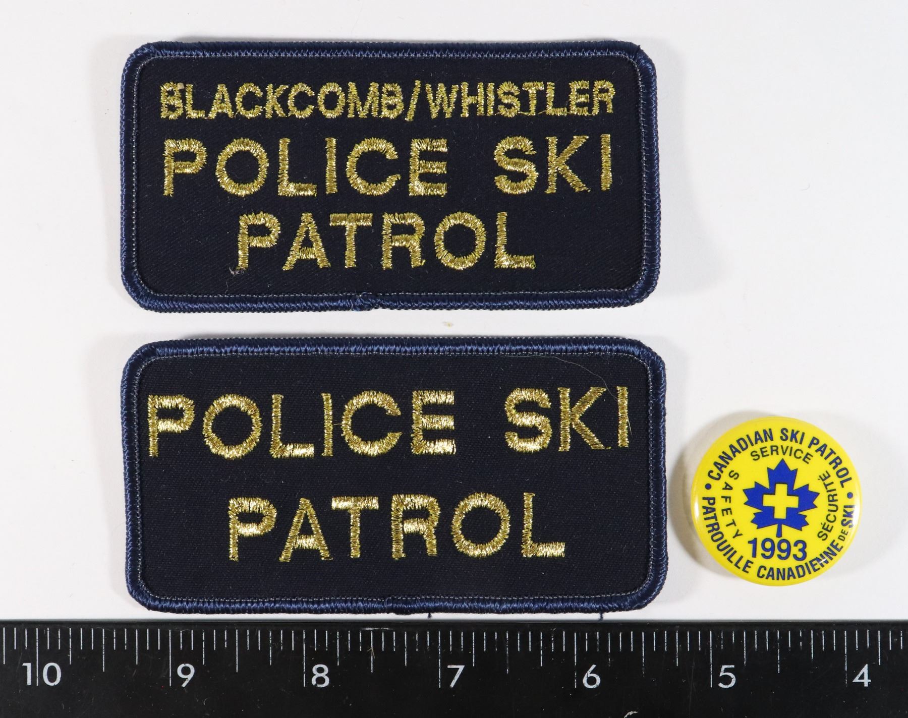 INCLUDES 2 PATCHES AND 1993 BUTTON FROM VERNON DETACHMENT VOLUNTEER SKI PATROL ROYAL CANADIAN MONTED POLICE VINTAGE POLICE LAW ENFORCEMENT BADGE INSIGNIA