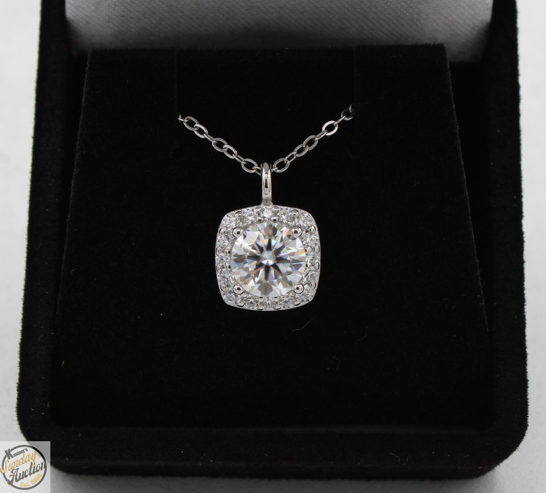 CUT MOISSANITE STONE VVS D COLOR WITH 25 ROUND BRILLIANT CUT CUBIC ZIRCONIA SET IN SQUARE HALO AND BALE SET IN 925 SILVER PENDANT RETAIL VALUE $900.00**ALL ITEMS MUST BE REMOVED BY 5PM SATURDAY, JULY 19TH 2025. ALL REMAINING ITEMS WILL BE SUBJECT TO A $6.00 PER DAY STORAGE CHARGE. ANY ITEMS REMAINING AFTER MONDAY, AUGUST 4TH, 2025 WILL BE CONSIDERED FORFEITED. NO REFUNDS WILL BE ISSUED FOR FORFEITED ITEMS. TO SCHEDULE A PICK UP APPOINTMENT CLICK HERE