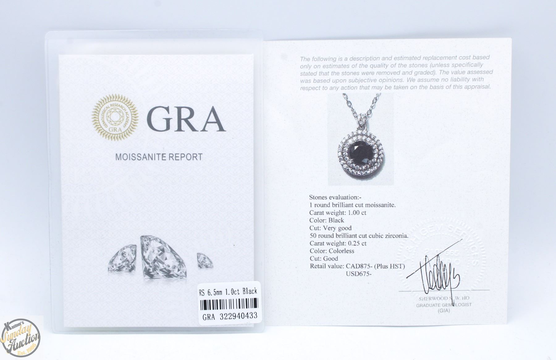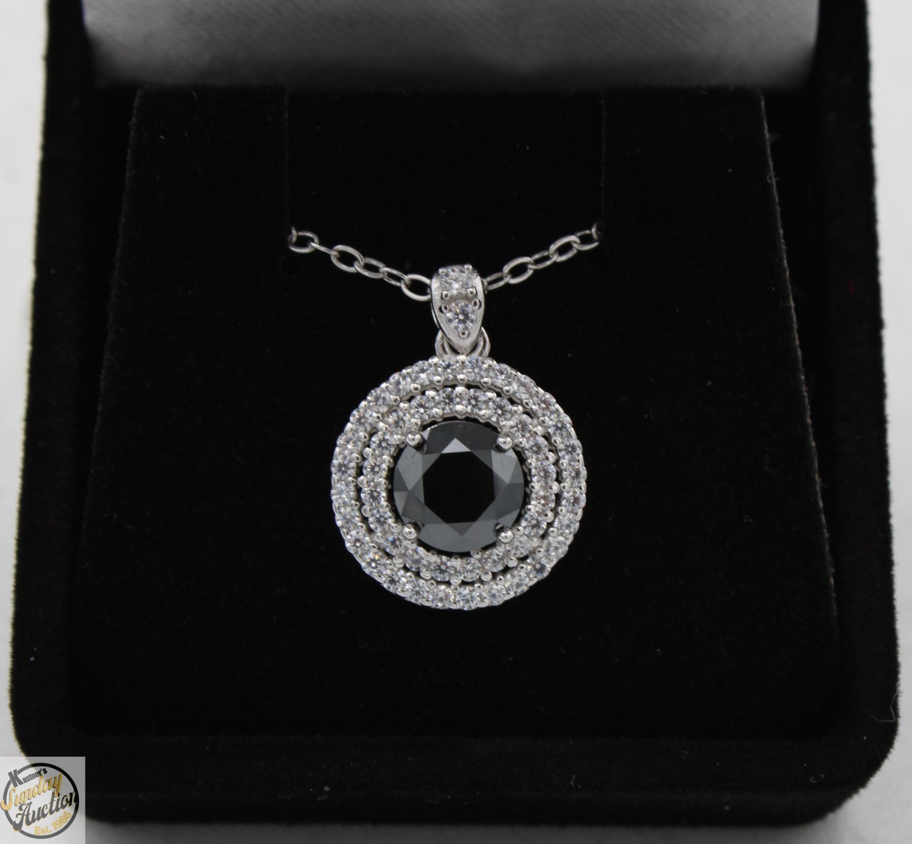 CUT MOISSANITE STONE VVS BLACK COLOR WITH 50 ROUND BRILLIANT CUT CUBIC ZIRCONIA SET DUAL HALOS AROUND CENTER WITH SOME IN BALE SET IN 925 SILVER PENDANT RETAIL VALUE $875.00**ALL ITEMS MUST BE REMOVED BY 5PM SATURDAY, JULY 19TH 2025. ALL REMAINING ITEMS WILL BE SUBJECT TO A $6.00 PER DAY STORAGE CHARGE. ANY ITEMS REMAINING AFTER MONDAY, AUGUST 4TH, 2025 WILL BE CONSIDERED FORFEITED. NO REFUNDS WILL BE ISSUED FOR FORFEITED ITEMS. TO SCHEDULE A PICK UP APPOINTMENT CLICK HERE