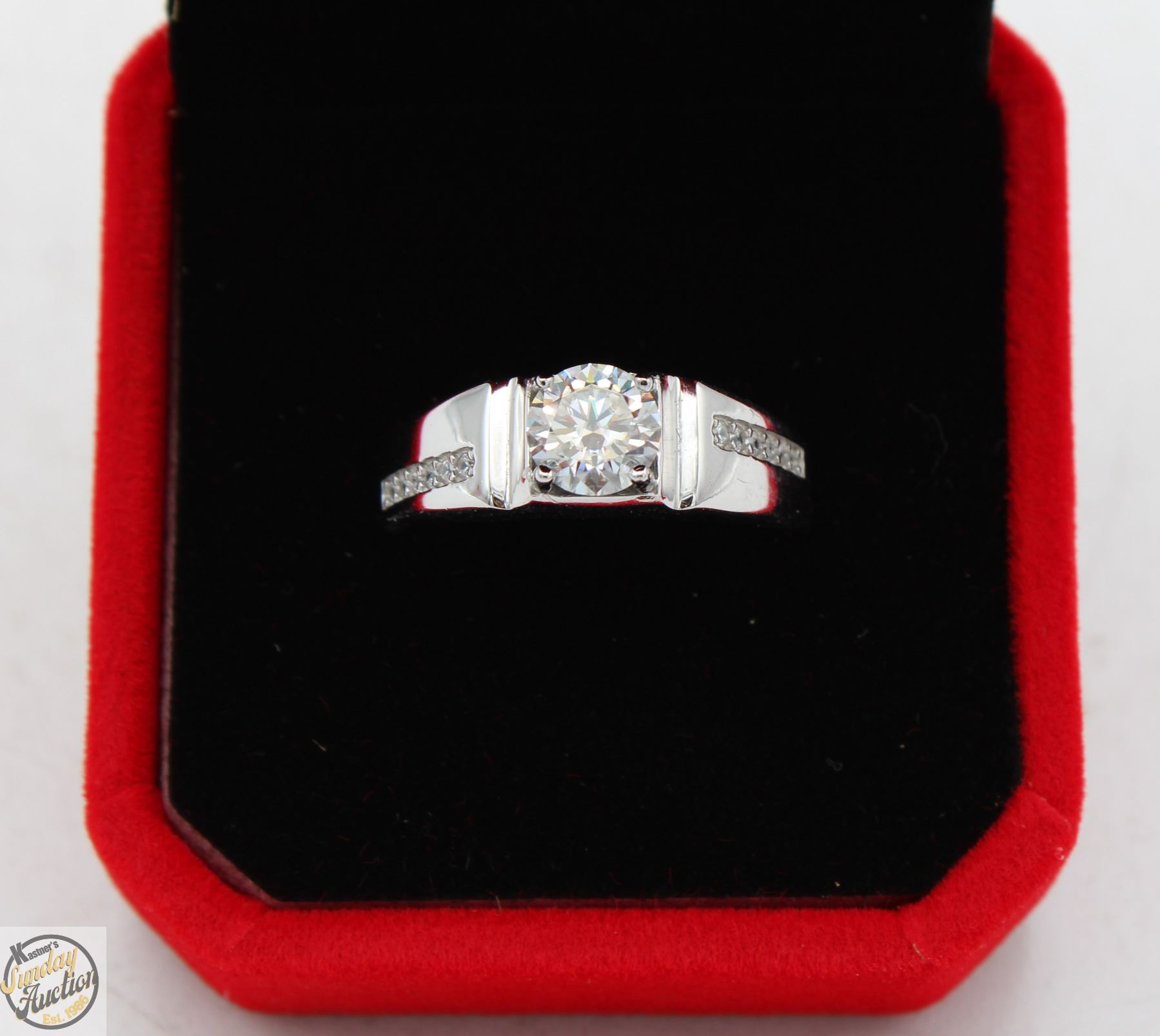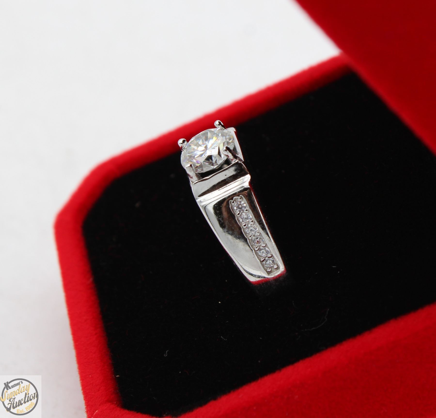 CUT MOISSANITE STONE VVS D COLOR WITH 12 ROUND BRILLIANT CUT CUBIC ZIRCONIA SET IN SHANKS SET IN 925 SILVER RING SIZE ADJUSTABLE RETAIL VALUE $700.00 **ALL ITEMS MUST BE REMOVED BY 5PM SATURDAY, JULY 26th 2025. ALL REMAINING ITEMS WILL BE SUBJECT TO A $6.00 PER DAY STORAGE CHARGE. ANY ITEMS REMAINING AFTER MONDAY, AUGUST 11TH 2025 WILL BE CONSIDERED FORFEITED. NO REFUNDS WILL BE ISSUED FOR FORFEITED ITEMS. TO SCHEDULE A PICK UP APPOINTMENT CLICK HERE