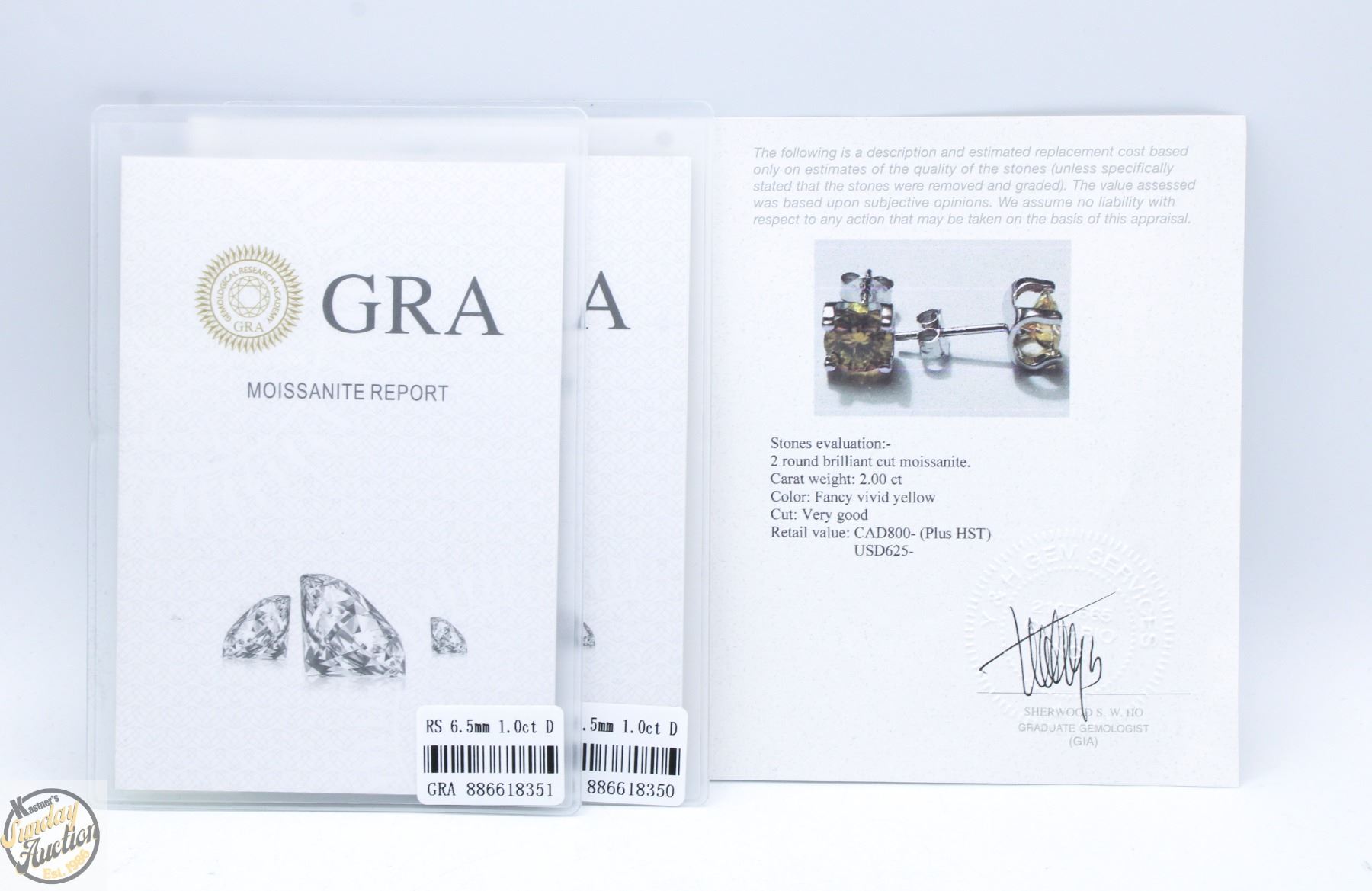 BRILLIANT CUT MOISSANITE STONES VVS FANCY VIVID YELLOW COLOR SET IN 4 CLAW HEAD SET IN 925 SILVER EARRINGS RETAIL VALUE $800.00**ALL ITEMS MUST BE REMOVED BY 5PM SATURDAY, JULY 19TH 2025. ALL REMAINING ITEMS WILL BE SUBJECT TO A $6.00 PER DAY STORAGE CHARGE. ANY ITEMS REMAINING AFTER MONDAY, AUGUST 4TH, 2025 WILL BE CONSIDERED FORFEITED. NO REFUNDS WILL BE ISSUED FOR FORFEITED ITEMS. TO SCHEDULE A PICK UP APPOINTMENT CLICK HERE