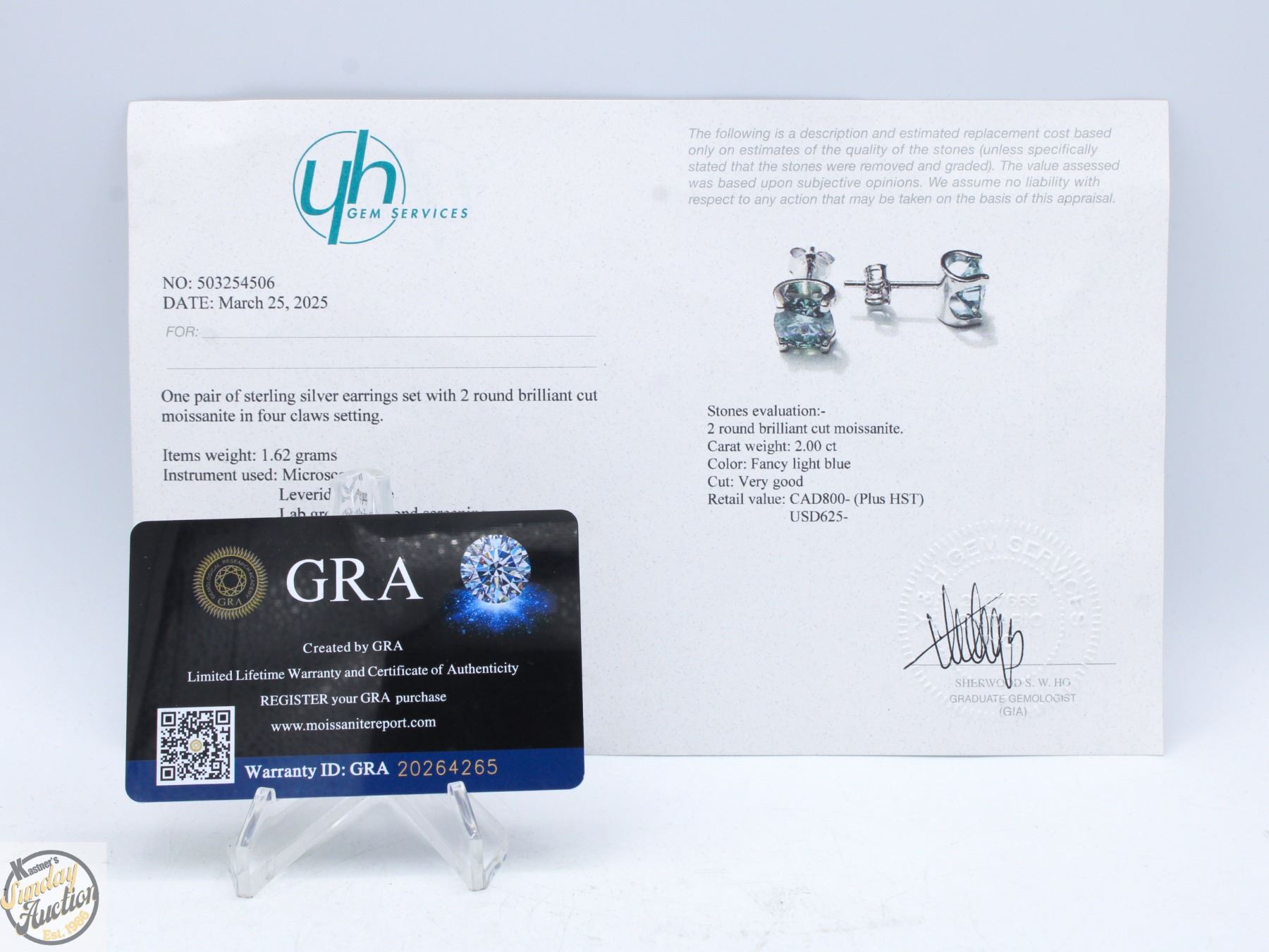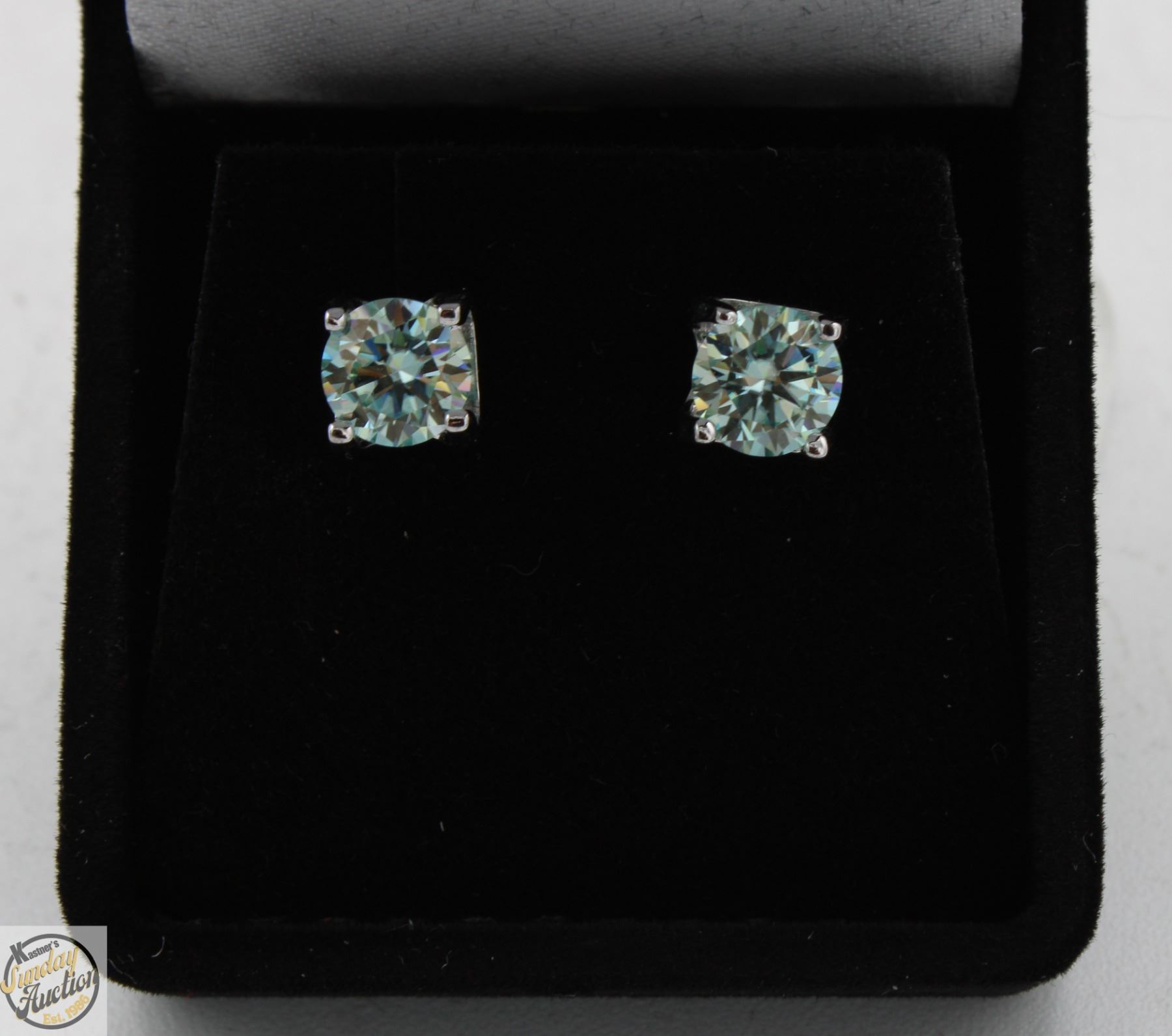BRILLIANT CUT MOISSANITE STONES VVS FANCY LIGHT BLUE COLOR SET IN 4 CLAW HEAD SET IN 925 SILVER EARRINGS RETAIL VALUE $800.00**ALL ITEMS MUST BE REMOVED BY 5PM SATURDAY, JULY 19TH 2025. ALL REMAINING ITEMS WILL BE SUBJECT TO A $6.00 PER DAY STORAGE CHARGE. ANY ITEMS REMAINING AFTER MONDAY, AUGUST 4TH, 2025 WILL BE CONSIDERED FORFEITED. NO REFUNDS WILL BE ISSUED FOR FORFEITED ITEMS. TO SCHEDULE A PICK UP APPOINTMENT CLICK HERE