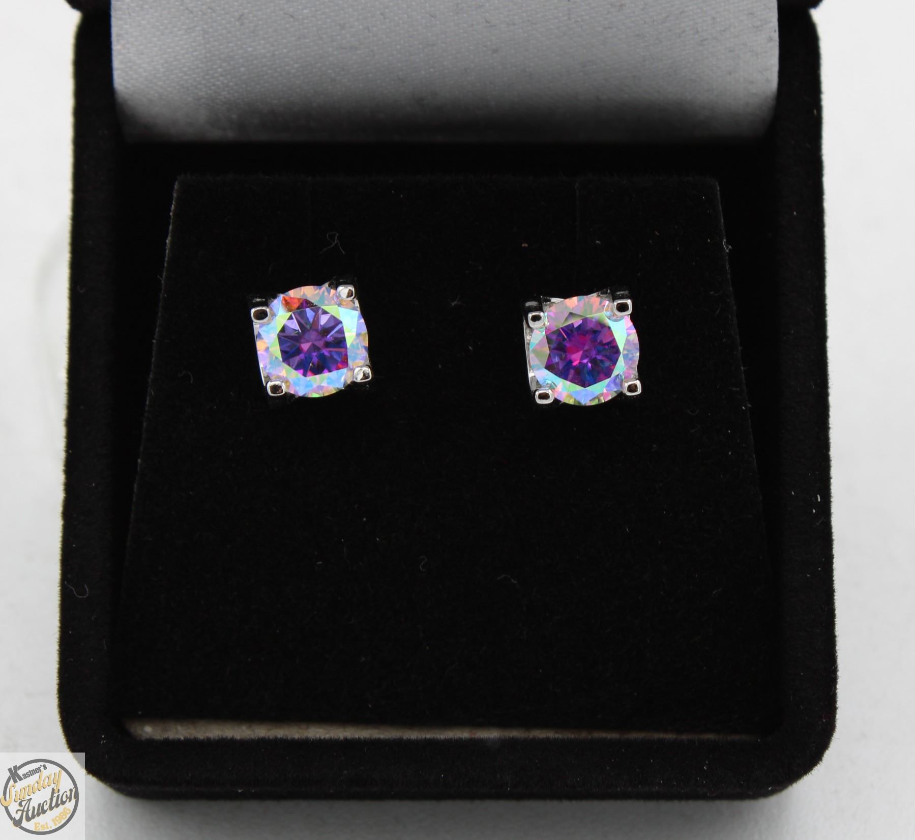 CUT MOISSANITE STONES VVS FANCY RAINBOW COLOR SET IN 4 CLAW HEAD SET IN 925 SILVER EARRINGS RETAIL VALUE $800.00 **ALL ITEMS MUST BE REMOVED BY 5PM SATURDAY, JULY 26th 2025. ALL REMAINING ITEMS WILL BE SUBJECT TO A $6.00 PER DAY STORAGE CHARGE. ANY ITEMS REMAINING AFTER MONDAY, AUGUST 11TH 2025 WILL BE CONSIDERED FORFEITED. NO REFUNDS WILL BE ISSUED FOR FORFEITED ITEMS. TO SCHEDULE A PICK UP APPOINTMENT CLICK HERE