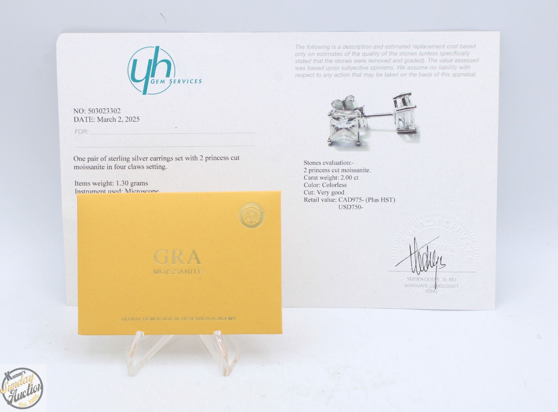 MOISSANITE STONES VVS D COLOR SET IN 4 CLAW BASKET HEAD SET IN 925 SILVER EARRINGS RETAIL VALUE $975.00 **ALL ITEMS MUST BE REMOVED BY 5PM SATURDAY, JULY 26th 2025. ALL REMAINING ITEMS WILL BE SUBJECT TO A $6.00 PER DAY STORAGE CHARGE. ANY ITEMS REMAINING AFTER MONDAY, AUGUST 11TH 2025 WILL BE CONSIDERED FORFEITED. NO REFUNDS WILL BE ISSUED FOR FORFEITED ITEMS. TO SCHEDULE A PICK UP APPOINTMENT CLICK HERE