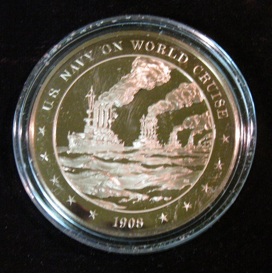 291. 1908 U.S. Navy on World Cruise Proof Bronze Medal. Encapsulated. 46mm.
