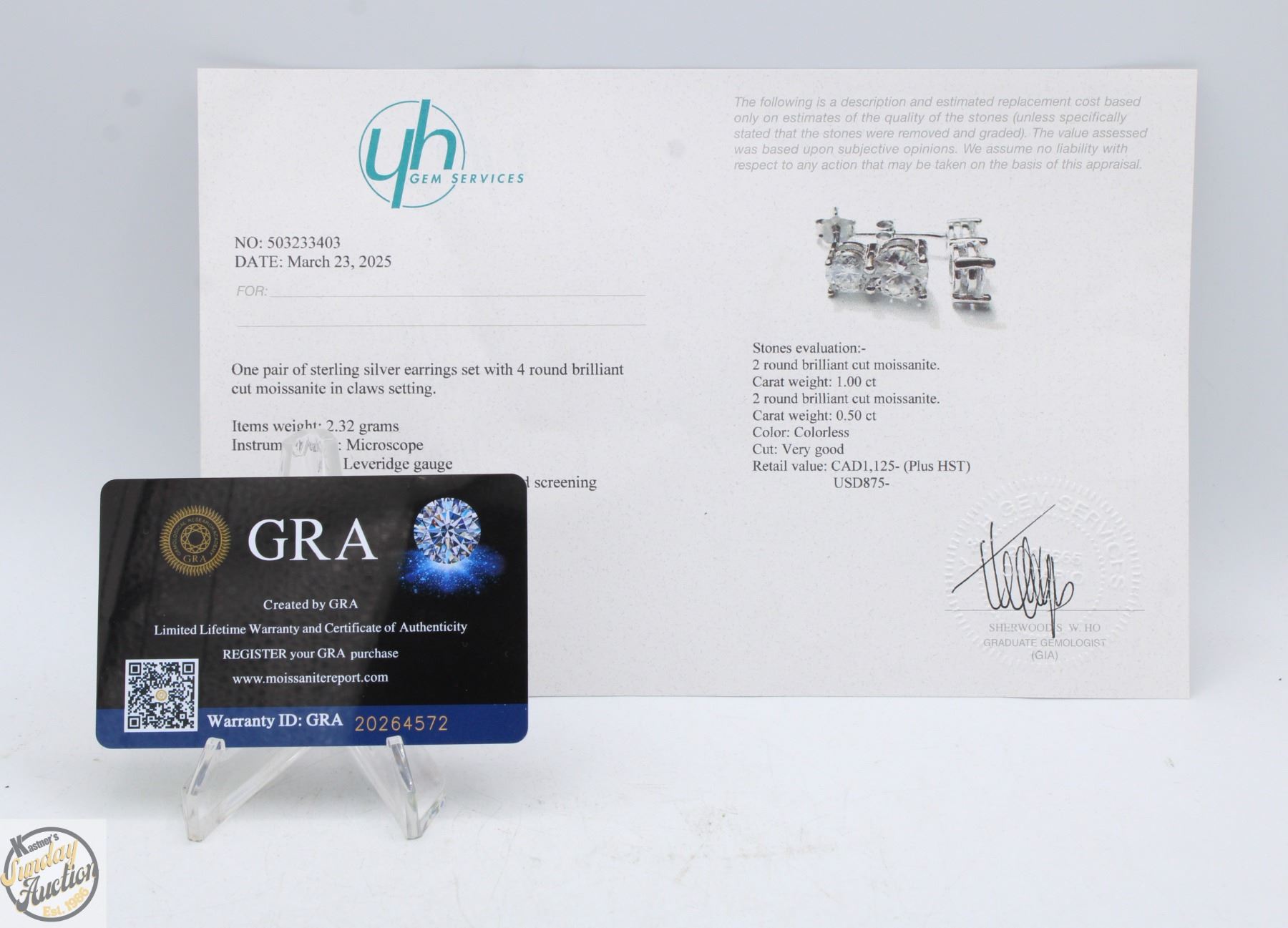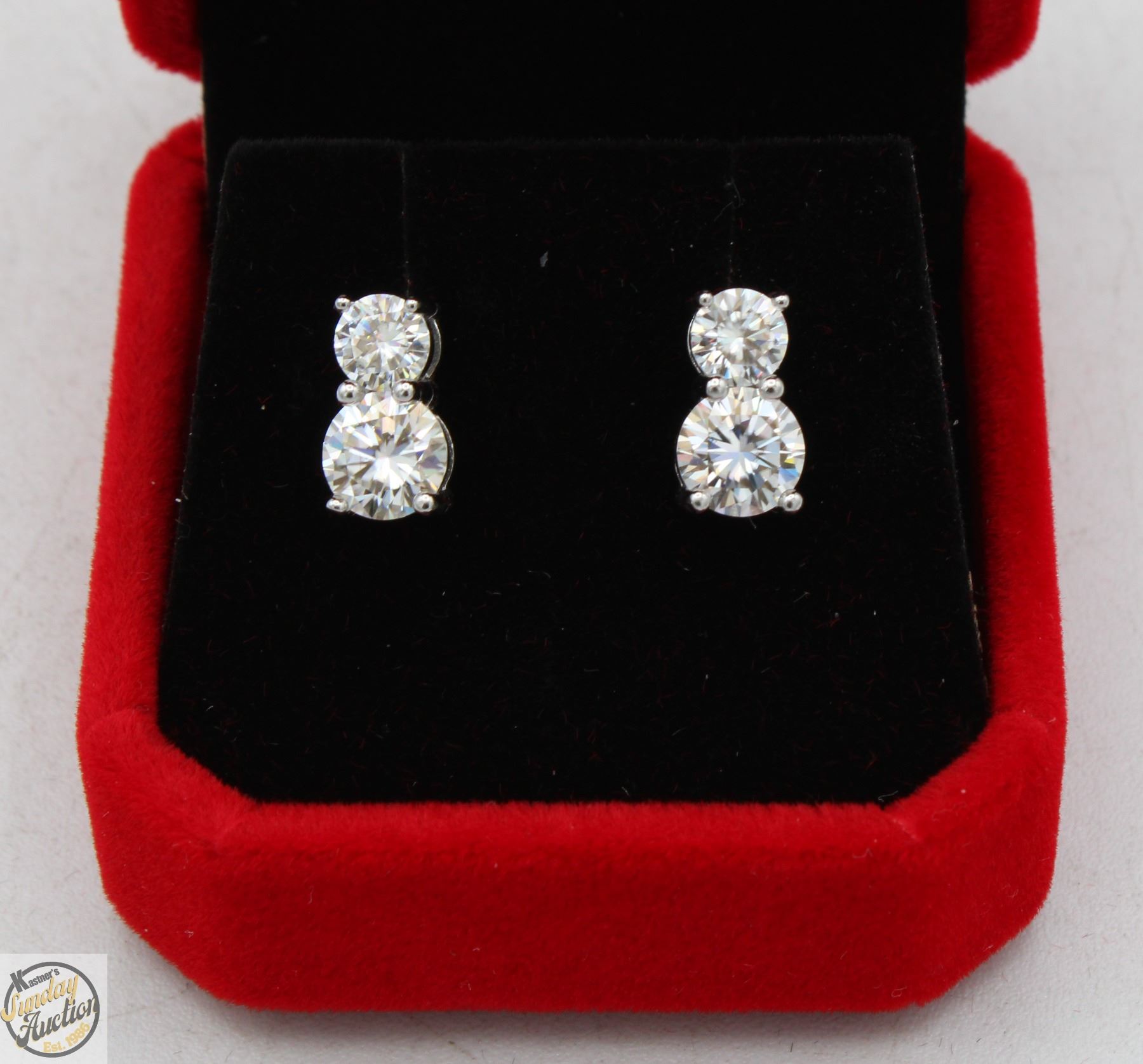 BRILLIANT CUT MOISSANITE STONES VVS D COLOR WITH 0.50 CT SET ABOVE A 1.00 CT MOISSANITE SET IN 4 CLAW DUAL BASKET HEAD SET IN 925 SILVER EARRINGS RETAIL VALUE $1,125.00**ALL ITEMS MUST BE REMOVED BY 5PM SATURDAY, JULY 19TH 2025. ALL REMAINING ITEMS WILL BE SUBJECT TO A $6.00 PER DAY STORAGE CHARGE. ANY ITEMS REMAINING AFTER MONDAY, AUGUST 4TH, 2025 WILL BE CONSIDERED FORFEITED. NO REFUNDS WILL BE ISSUED FOR FORFEITED ITEMS. TO SCHEDULE A PICK UP APPOINTMENT CLICK HERE