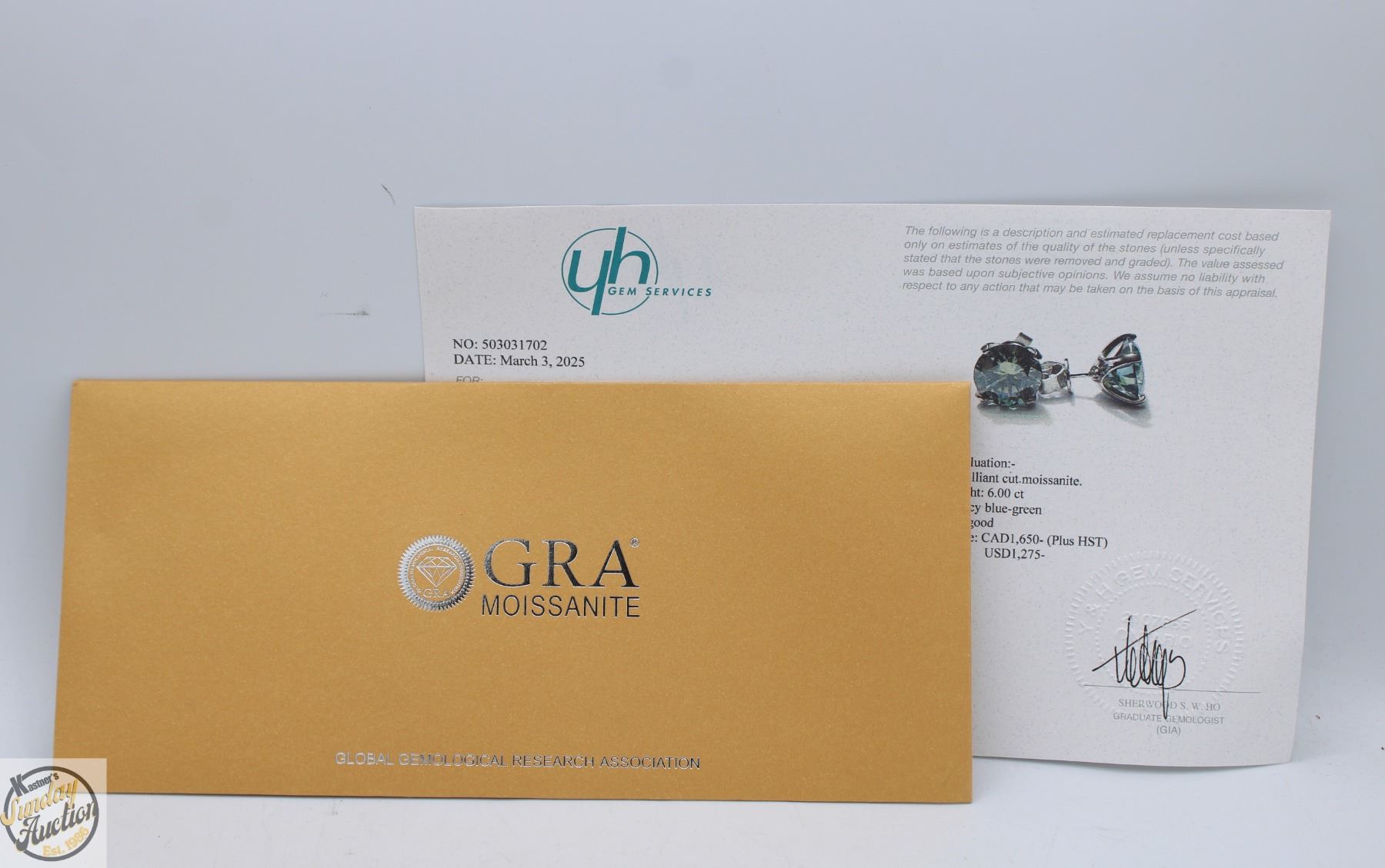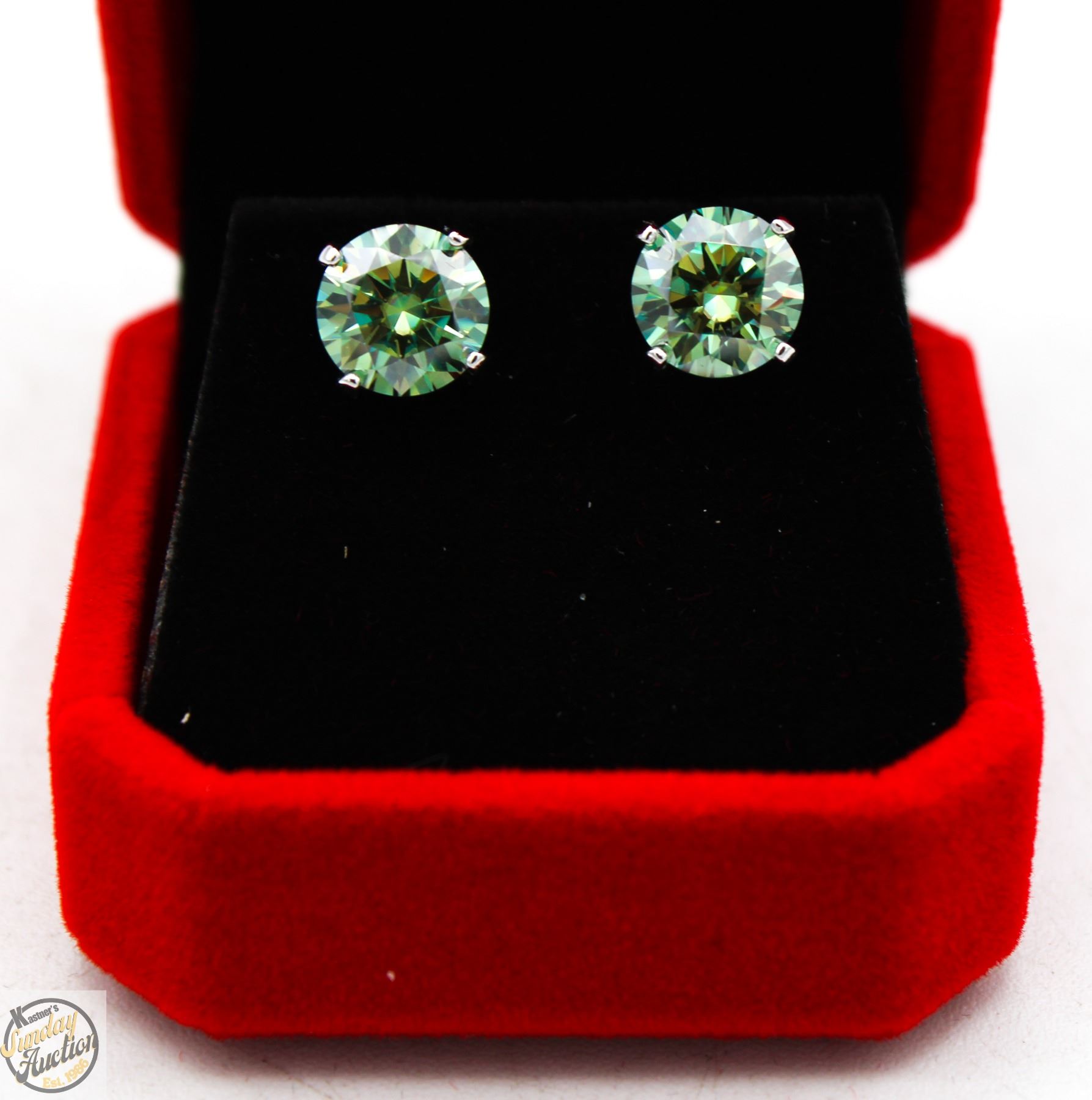 CUT MOISSANITE STONES VVS FANCY BLUE-GREEN COLOR SET IN 4 CLAW HEAD SET IN 925 SILVER EARRINGS RETAIL VALUE $1,650.00
