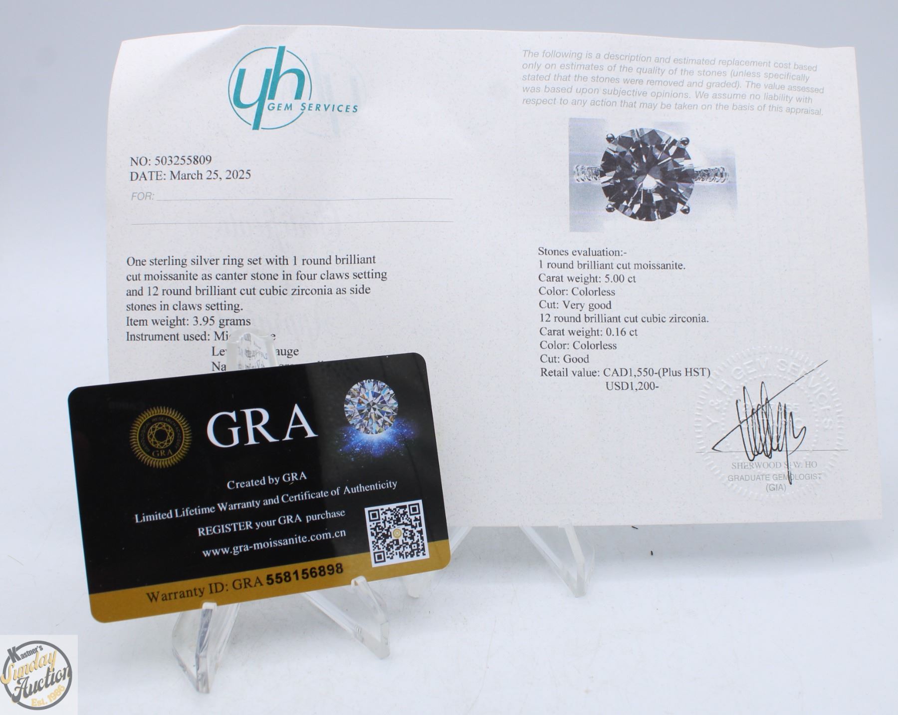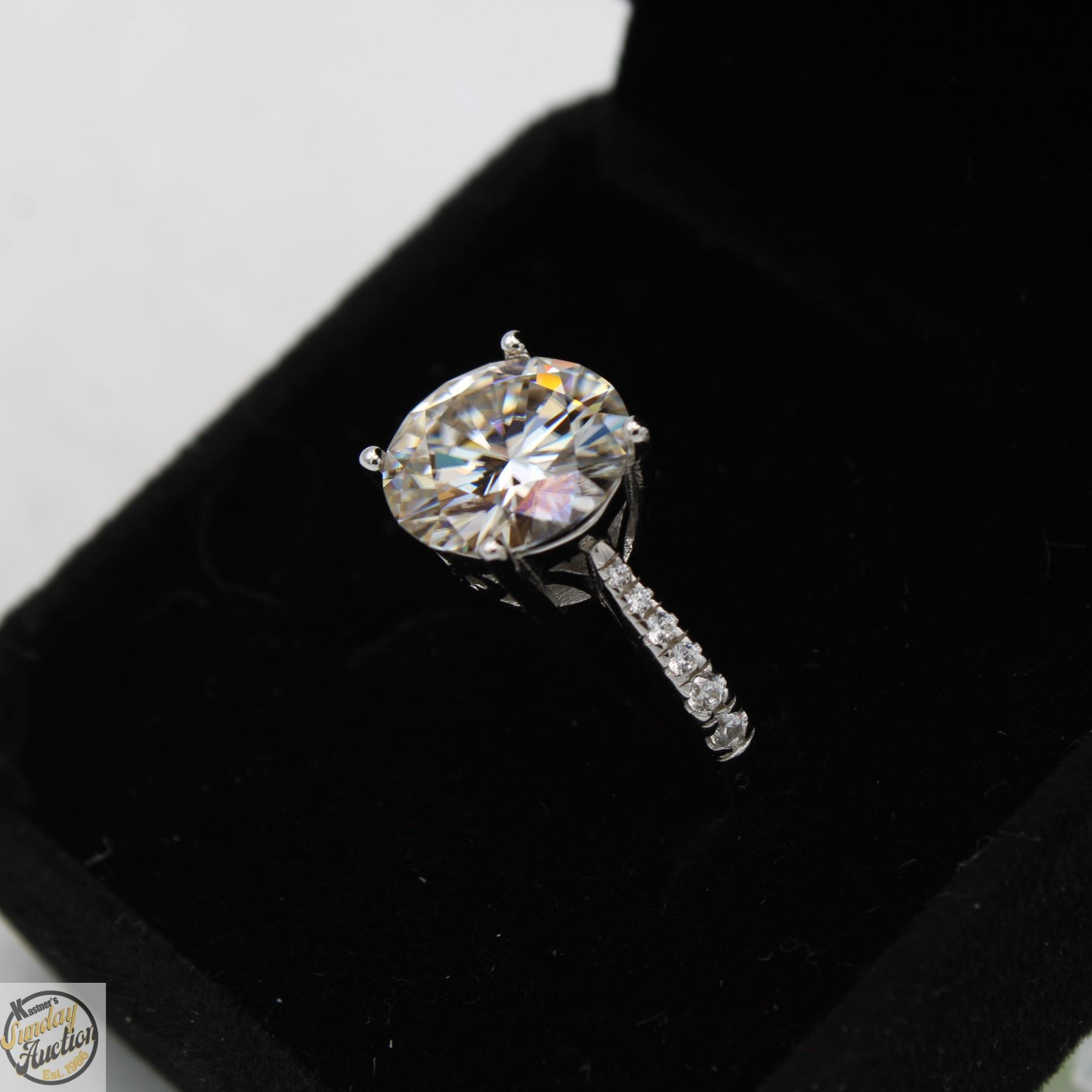 CUT MOISSANITE STONE VVS D COLOR SET IN CENTER WITH 12 ROUND BRILLIANT CUT CUBIC ZIRCONIA AND SET IN TAPERED SHANK SET IN 925 SILVER RING SIZE 7 RETAIL VALUE $1,550.00 **ALL ITEMS MUST BE REMOVED BY 5PM SATURDAY, AUGUST 16TH 2025. ALL REMAINING ITEMS WILL BE SUBJECT TO A $6.00 PER DAY STORAGE CHARGE. ANY ITEMS REMAINING AFTER MONDAY, SEPTEMBER 1ST 2025 WILL BE CONSIDERED FORFEITED. NO REFUNDS WILL BE ISSUED FOR FORFEITED ITEMS. TO SCHEDULE A PICK UP APPOINTMENT CLICK HERE