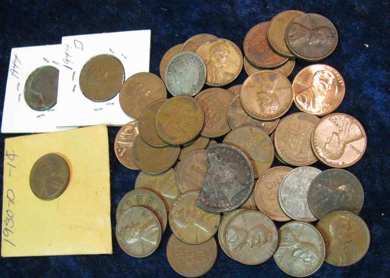 293. (37) Wheat & (4) Memorial Cents; Token; part of a counterfeit quarter; & 1914 P Barber Dime G-4.