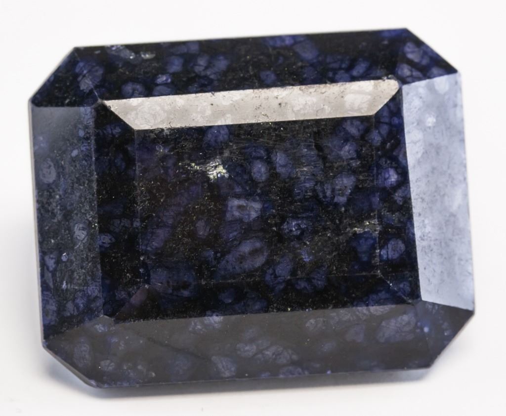 297.00 ct rectangular step cut blue natural sapphire. Accompanied with GLI certificate. 45.00 x 35.80 x 19.20 mm.