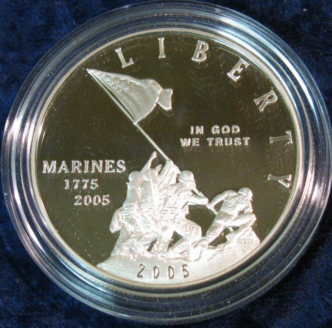 297. 1775-2005 P Marines U.S. Commemorative Proof Silver Dollar.