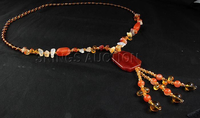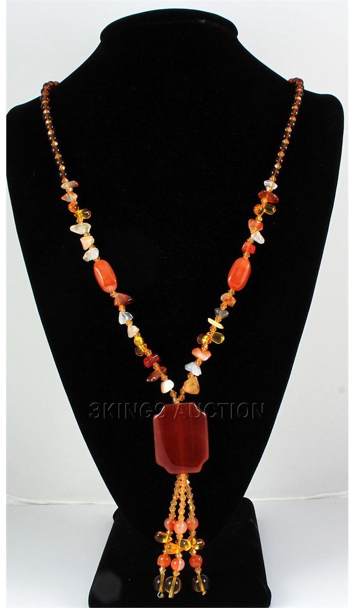 299.10CTW RED ORANGE CARNELIAN STATEMENT NECKLACE **|**|** 38INCHES YUMMY, WARM & INVITING CARNELIAN W/ PENDANT MIRROR POLISH NECKLACE; CENTER SIZE: 41X31X7MM ; MSRP: $300