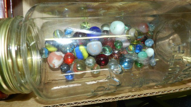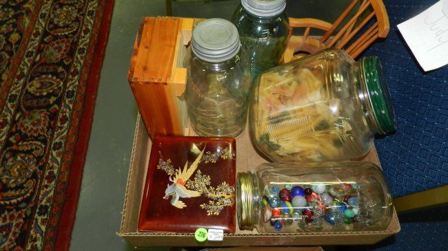 299) Box of collectibles including jars, marbles and jewelry boxes