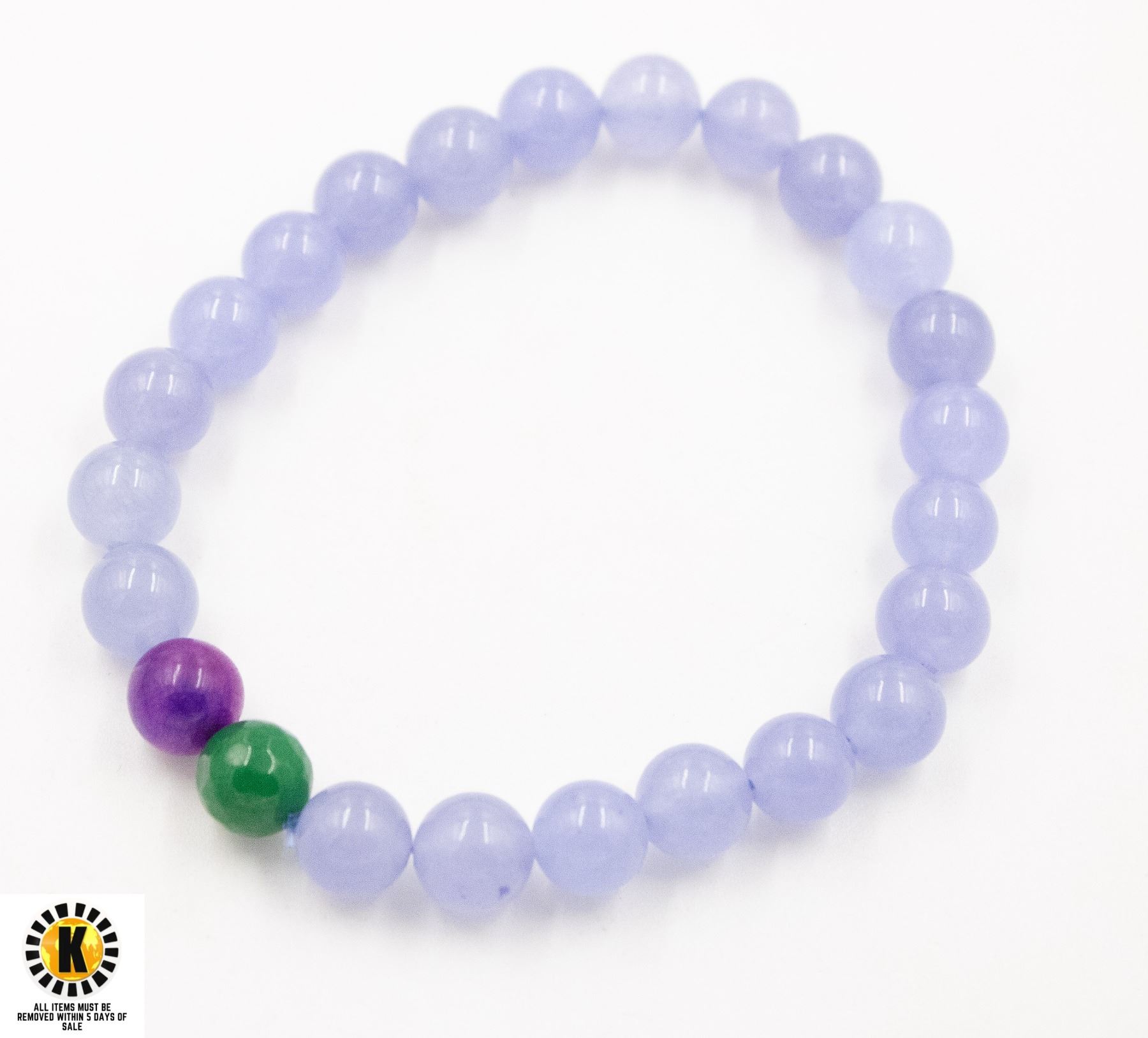 #299-EMERALD ,PURPLE JADEITE ,SUGILITE BEAD BRACE