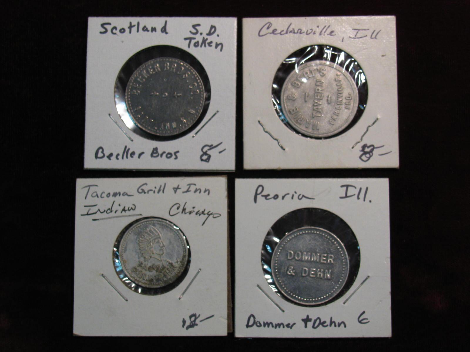 2990. (4) Different Good For Tokens including Scotland, SD.; Cedarville, Ill., Chicago, Ill.; & Peoria, Ill.