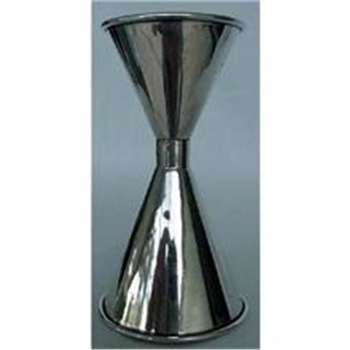 To measure tots, martinis etc here is a sterling silver double measuring cup. Probably first half of the 20th century. <P><P> Measures: 3 3/4" high. Weighs 2 oz. <P><P> Double measuring cup with one larger and one smaller funnel-shaped measure, joined in the center by a band. Silver is a nice, firm quality, with a great patina formed over the years. <P><P> Marks: the central band is inscribed STERLING 2233. <P><P> Condition: very good. The outer rim is ever so slightly bent out of a perfect circle due to age and use, but this in no way detracts from the piece.