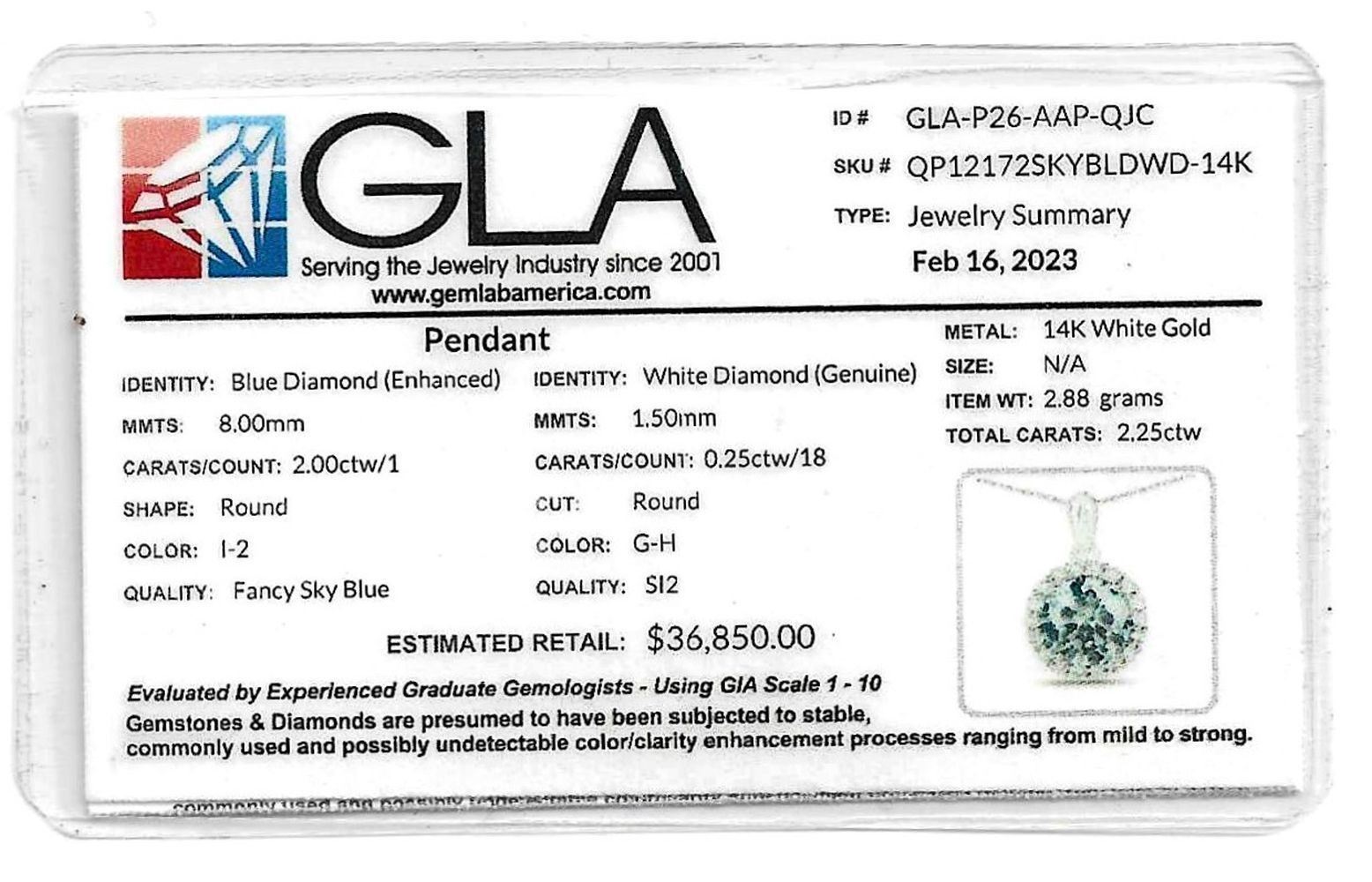 DESCRIPTION DETAIL: Earth-Mined Blue (Enhanced) and White Diamond Pendant