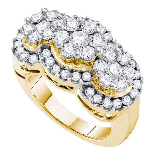 REF-319H9N ---- 2CT Diamond 3-Flower 14KT Ring Yellow Gold - SKU: 44583