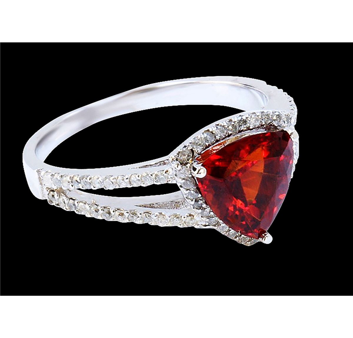 18K WHITE GOLD MALAYA GARNET RING3.27GRAMS/DIAMOND0.90CT/MALAYA GARNET:2CT/#GVR1047/MALAYA GARNET IS THE VERY RARE GARNET IN THE GARNET FAMILY. VERY HARD TO FIND THIS KIND OF COLOR AND QULAITY