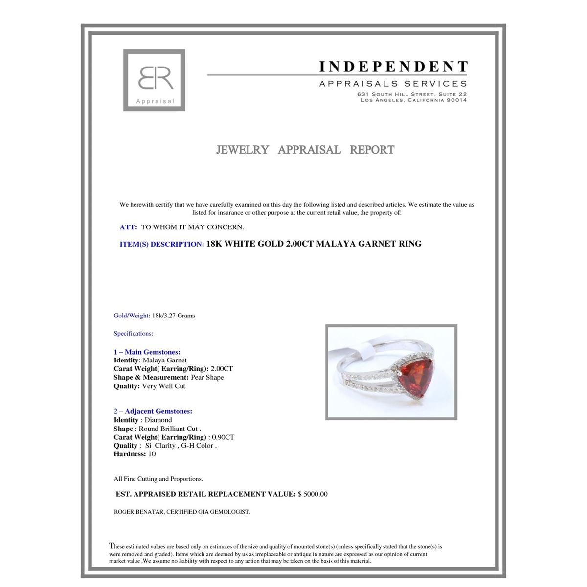 Not all jewelry, watches or loose stones are appraised and the appraisals are provided for bidders only in certain instances at the discretion of the Company. Appraisals, if any should be use to verify gemstone and or metal weights. The appraisals should not be used for valuation of any item. No guarantee, warranty or representation is intended by the Company in any appraisal. All dimensions and weights of such lots are approximate and are consistent with standards and practices in the industry. Condition reports are provided as a service to the prospective buyer. Bidders should take note that such descriptions are not warranties and that watches may need general service, change of battery or further repairs for which the buyer is solely responsible