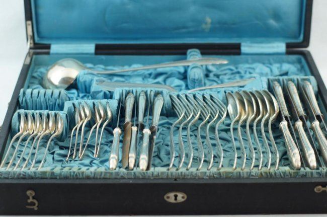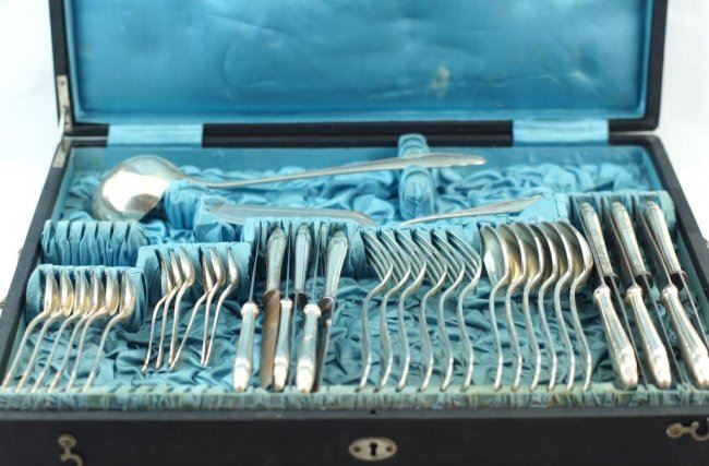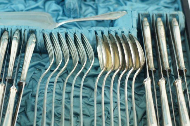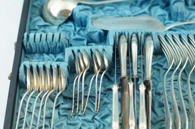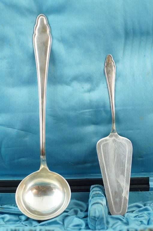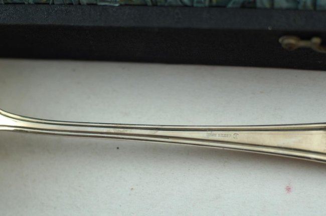 marked with the O90 mark and Solingen steel blades in original case - unusual set with serving pieces