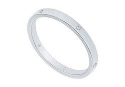 A symbol of commitment & unity this elegant five round bezel-set diamonds surrounded the band. Made in rich platinum with 2mm regular-fit flat wedding band & has a total weight (TDW) of 0.0.05 carat. This band thickness is about 1.2mm.