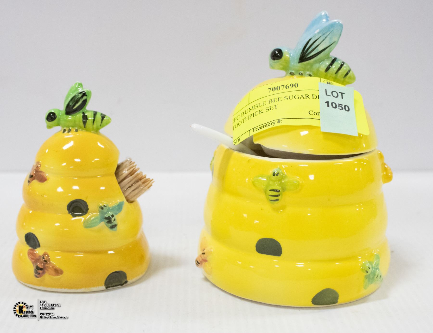 2PC BUMBLE BEE SUGAR DISH & TOOTHPICK SET