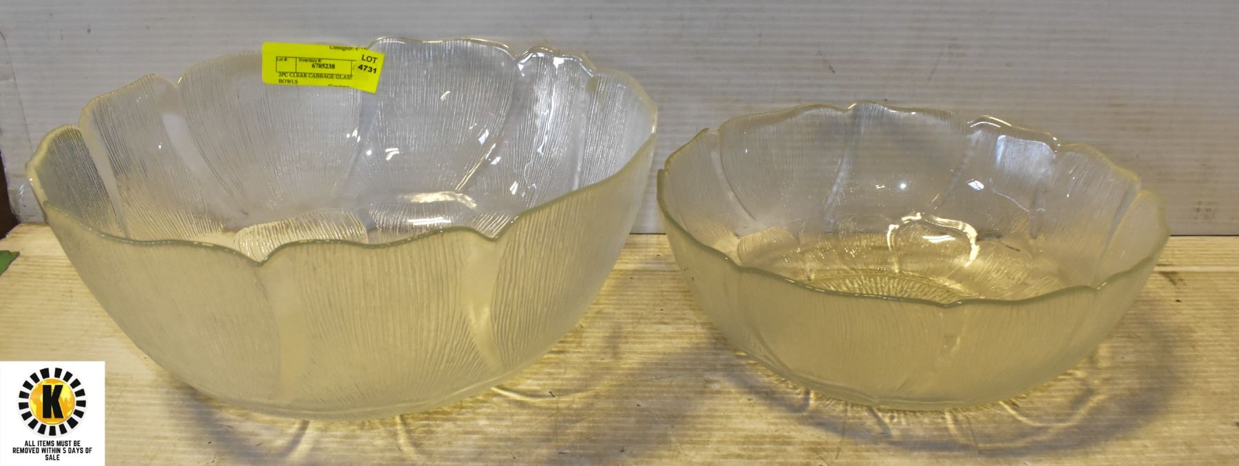 2PC CLEAR CABBAGE GLASS SALAD BOWLS