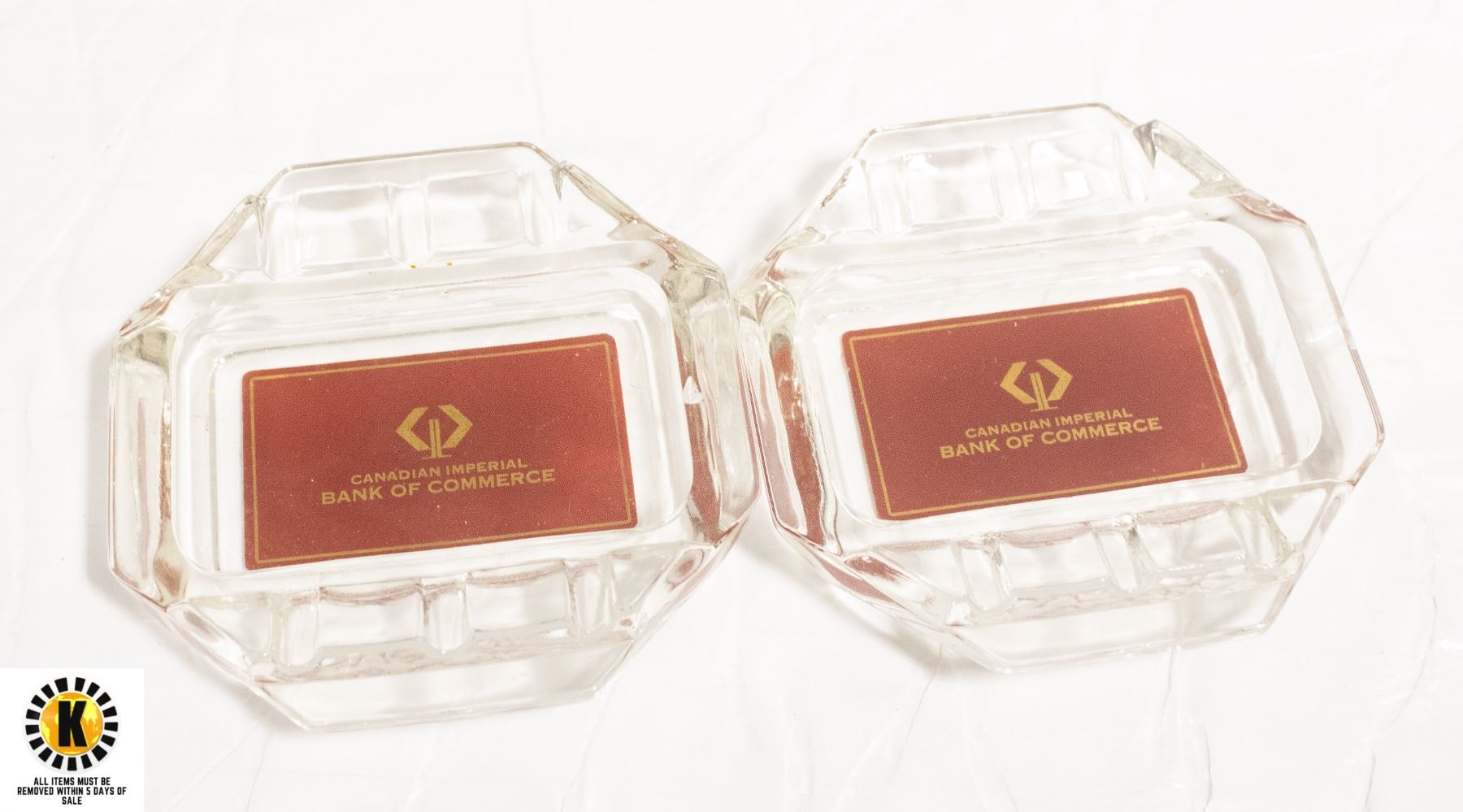 2PC VINTAGE GLASS CIBC ASHTRAYS TOBACCIANA