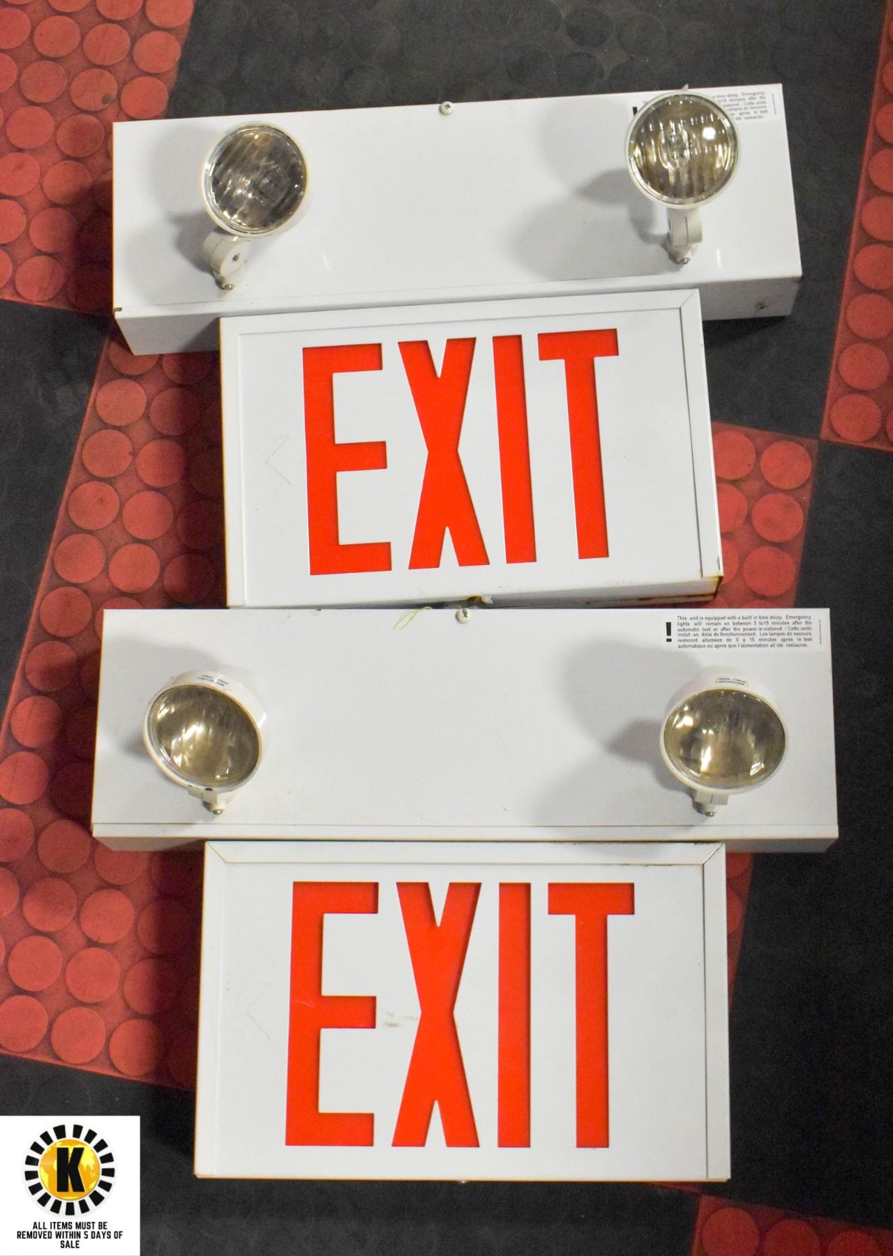 2PCS 'EXIT' SIGNS, WIRED 115V W/ BATT. BACKUP