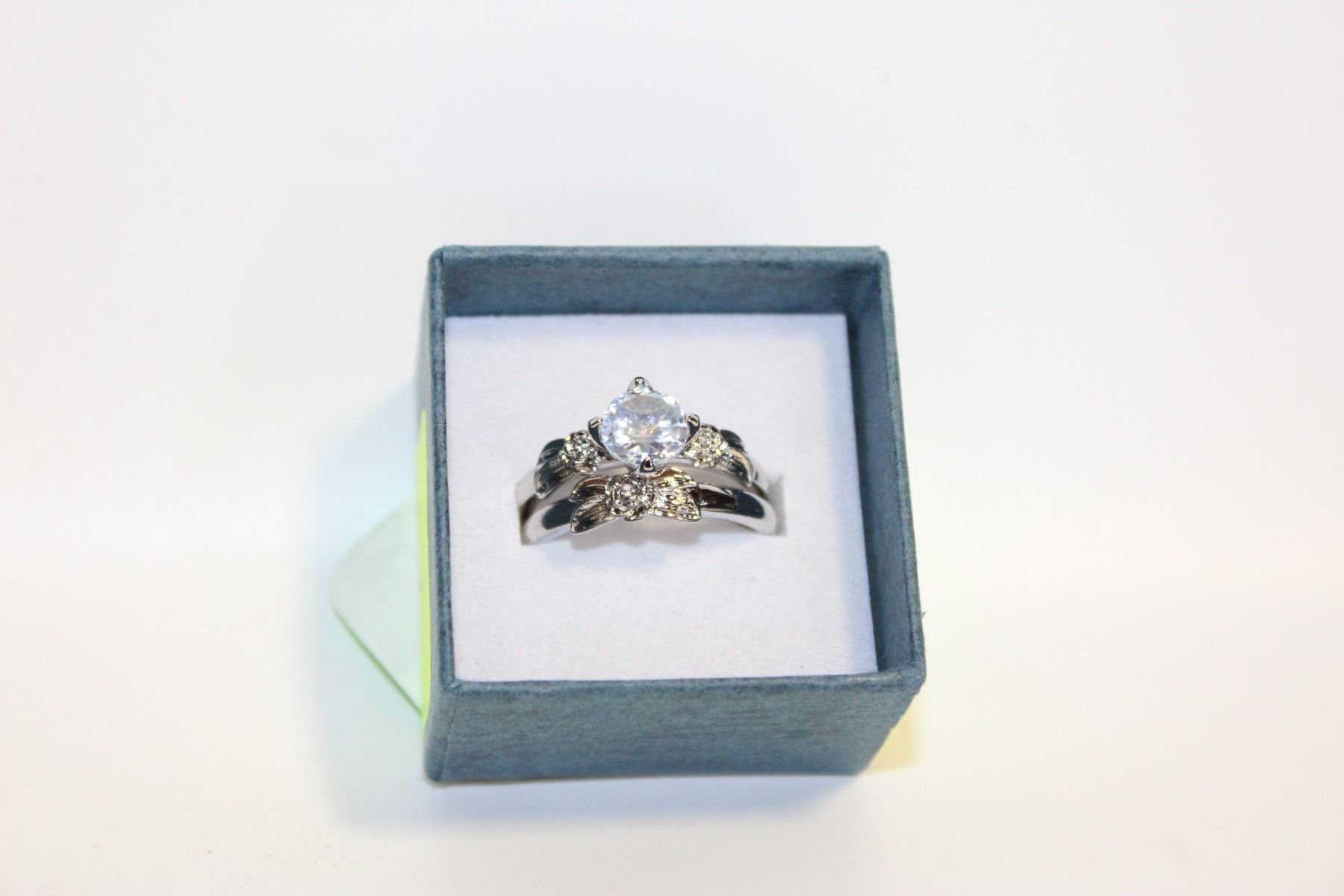2PCS WHITE SAPPHIRE WEDDING STYLE RINGS SET SZ8