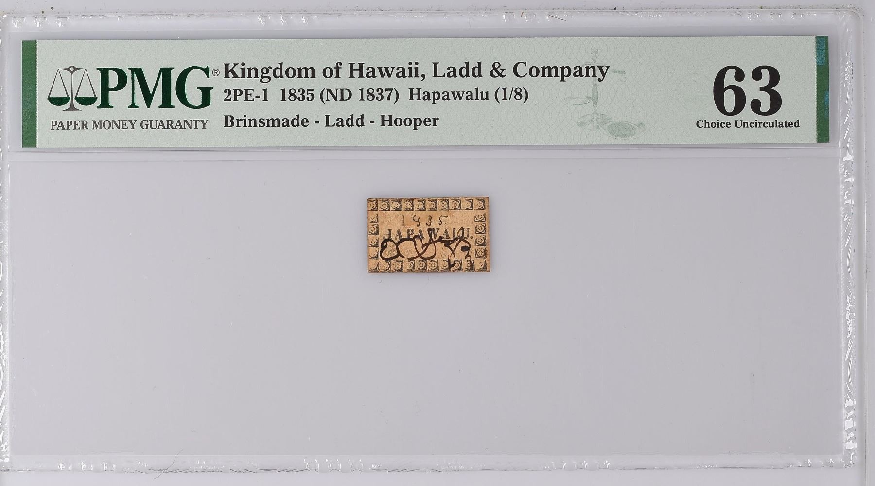 Title: 2PE-1 Kingdom of Hawaii Ladd & Co. 1835 HAPAWALU (1/8 dollar). PMG-63.