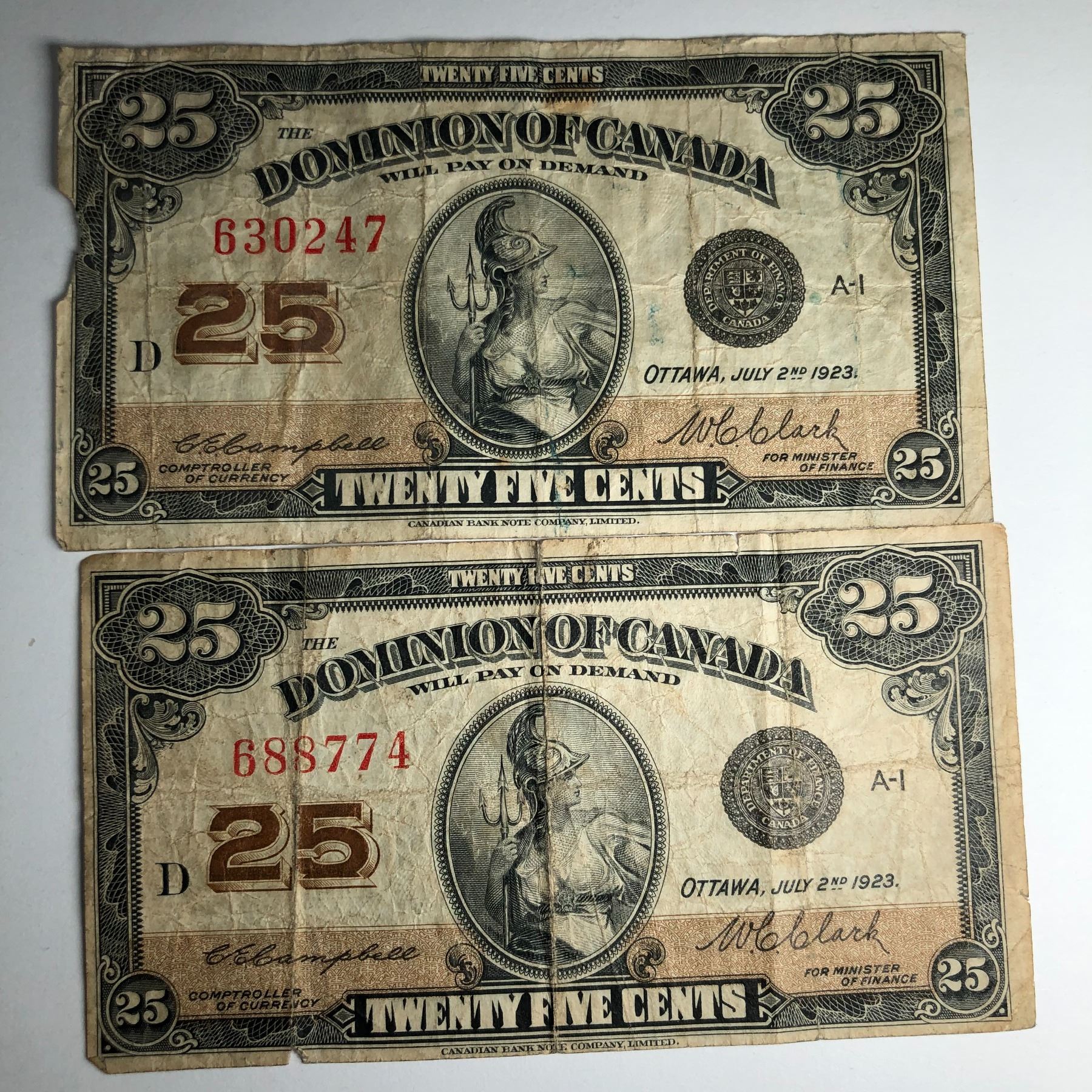 2X-1923 25 Cent Shinplaster DC-24c Letter D Campbell/Clark