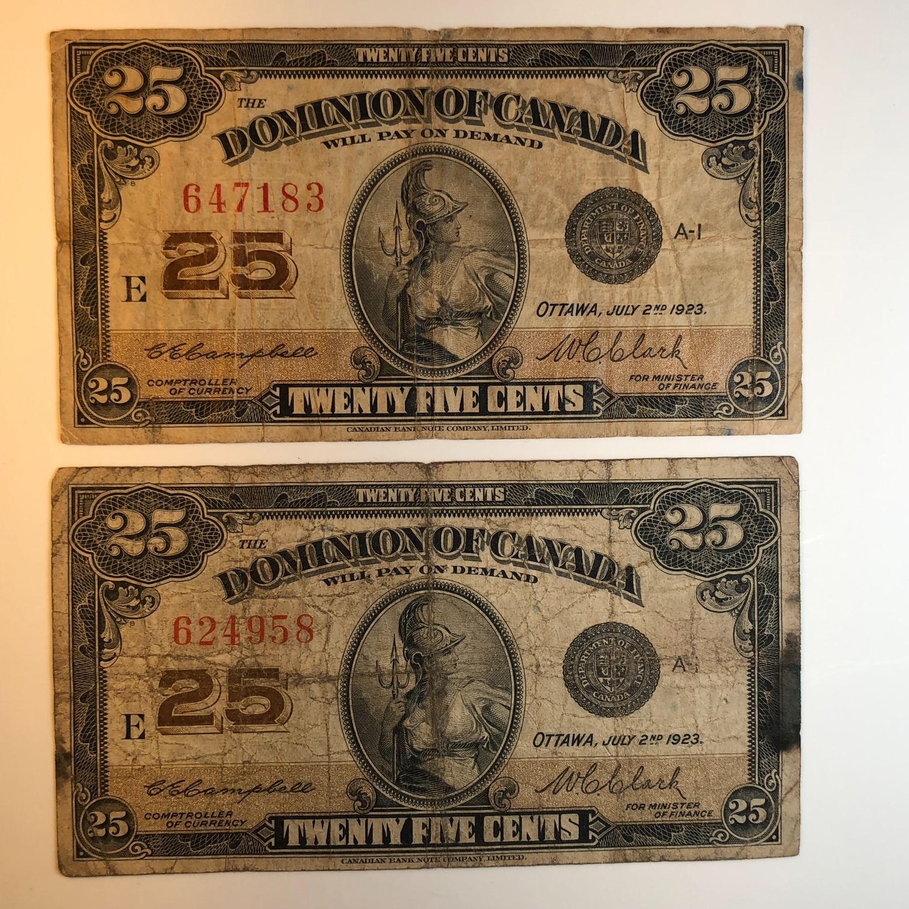 2X-1923 25 Cent Shinplaster DC-24c Letter E Campbell/Clark