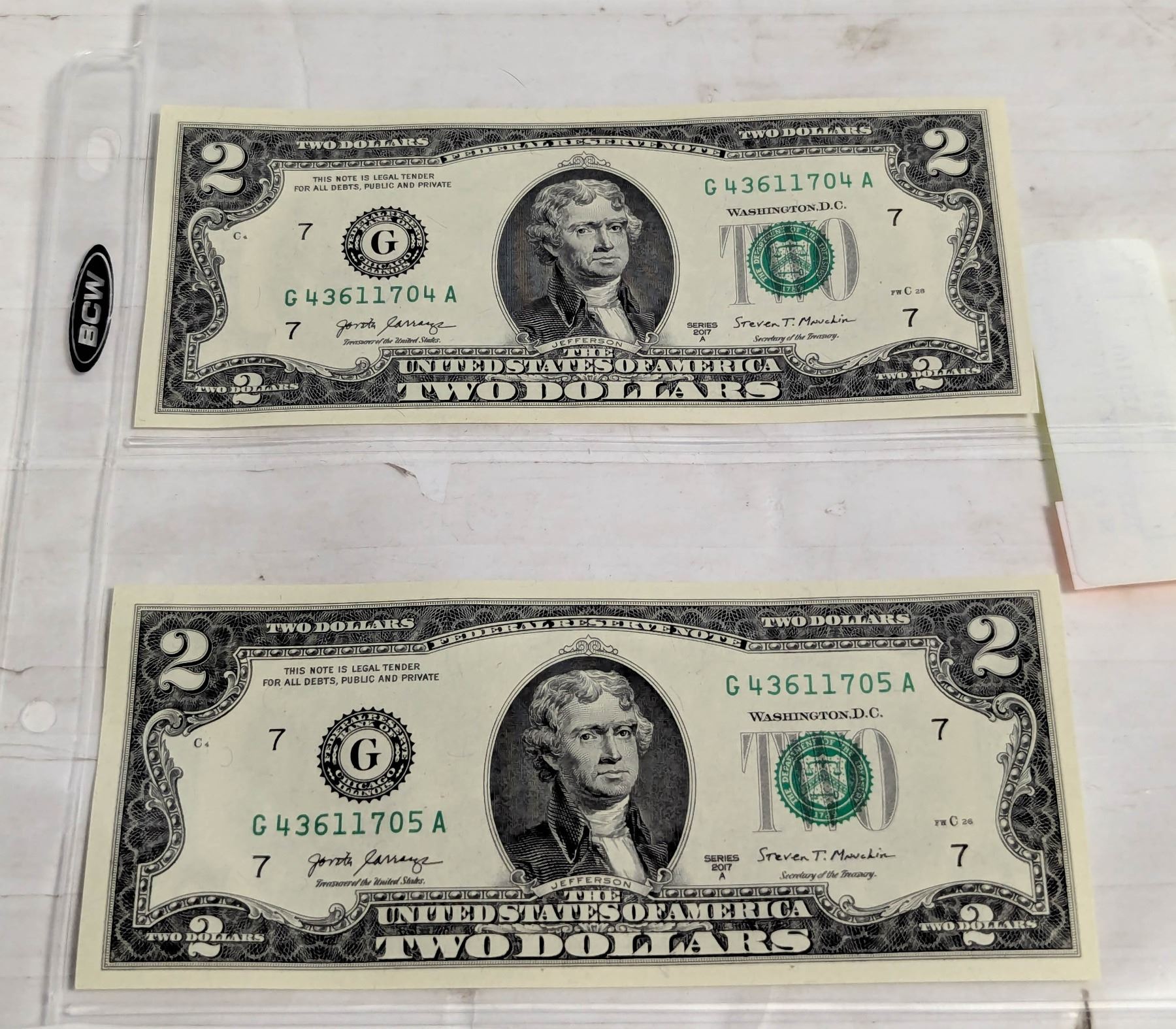 2X$2 US BANK NOTES CONSECUTIVE SE #'S