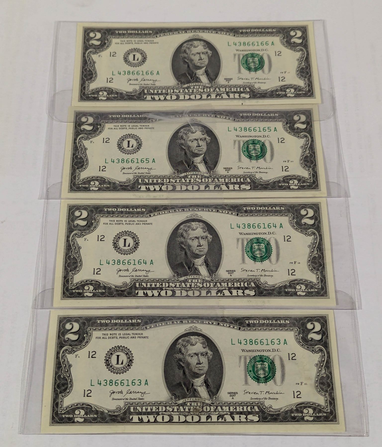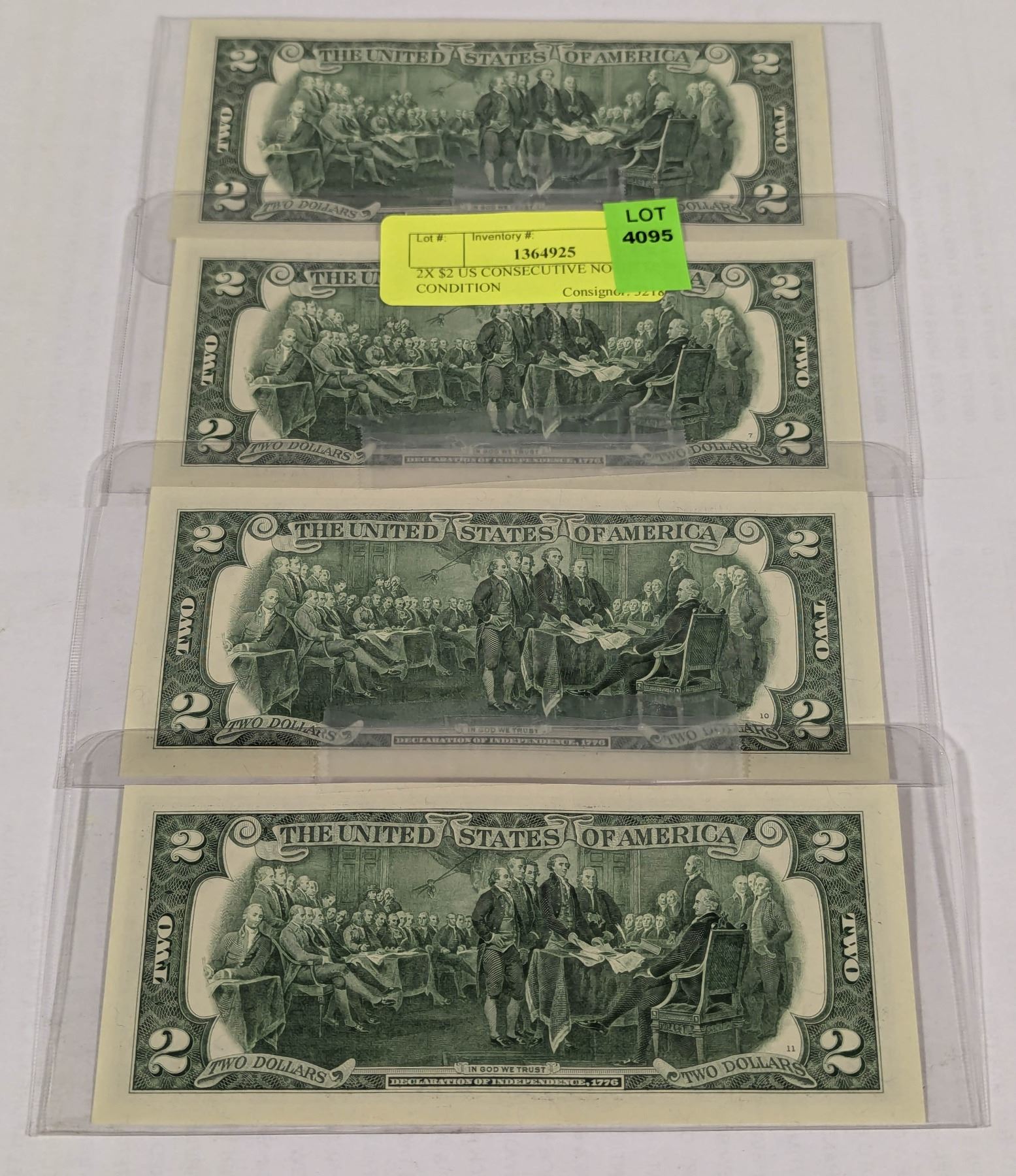 2X $2 US CONSECUTIVE NOTES MINT CONDITION
