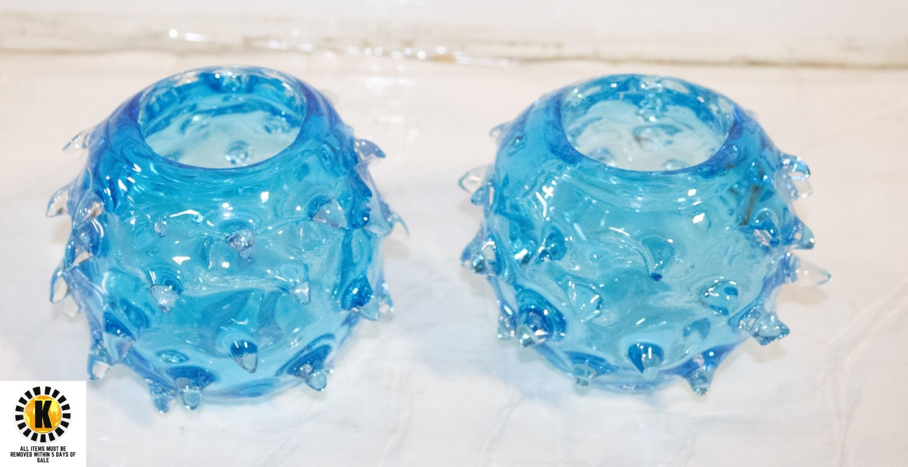 2X EI8HTEEN KARAT BLUE SPIKE BALL VASE