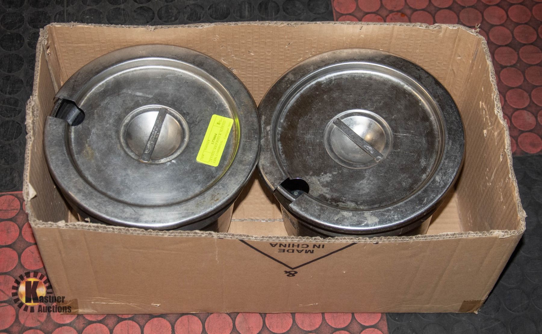 2X STEEL SOUP POTS W. SLOTTED LIDS, COMMRSIAL