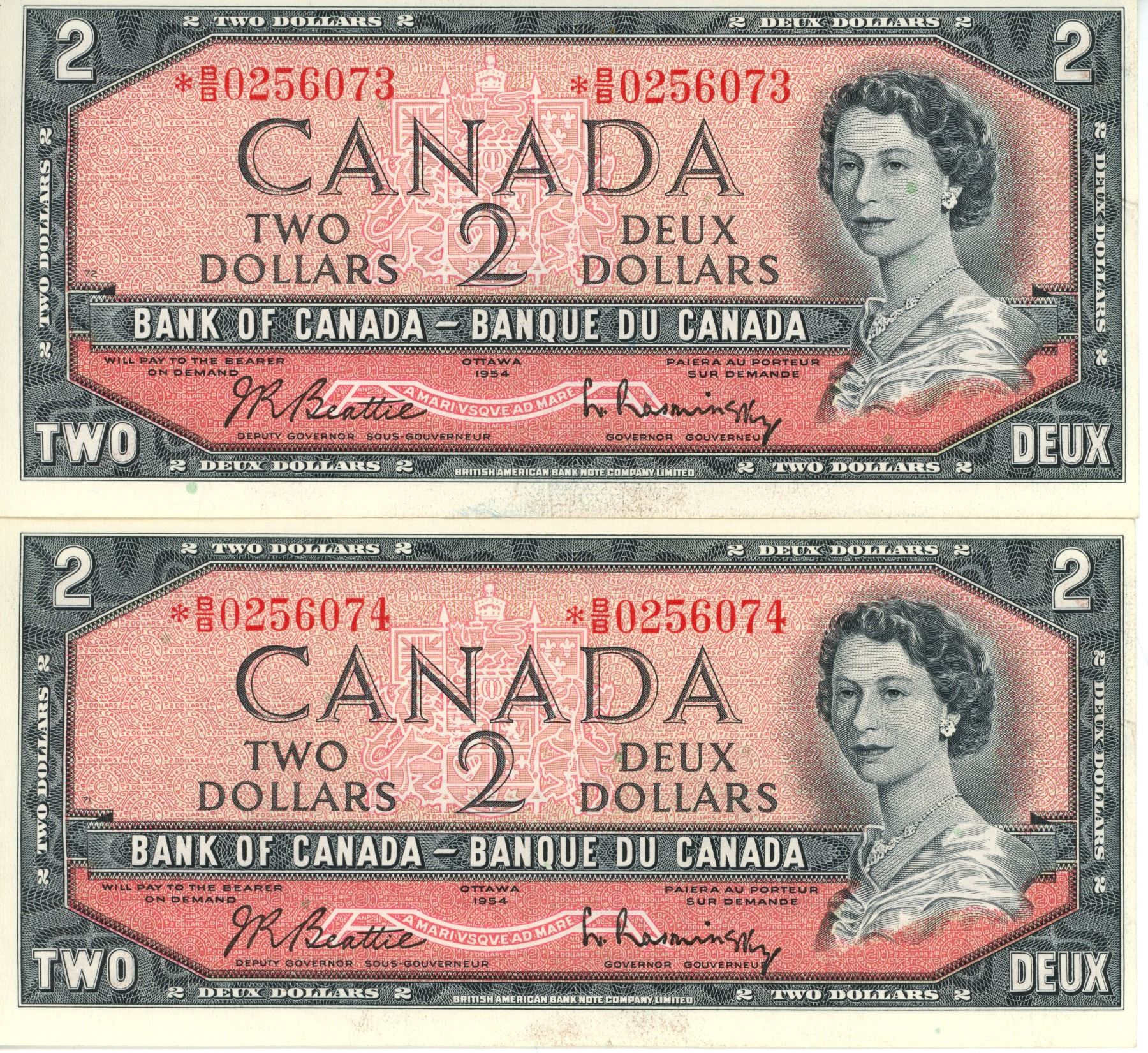 2X Sequential 1954 Replacement $2 Bills