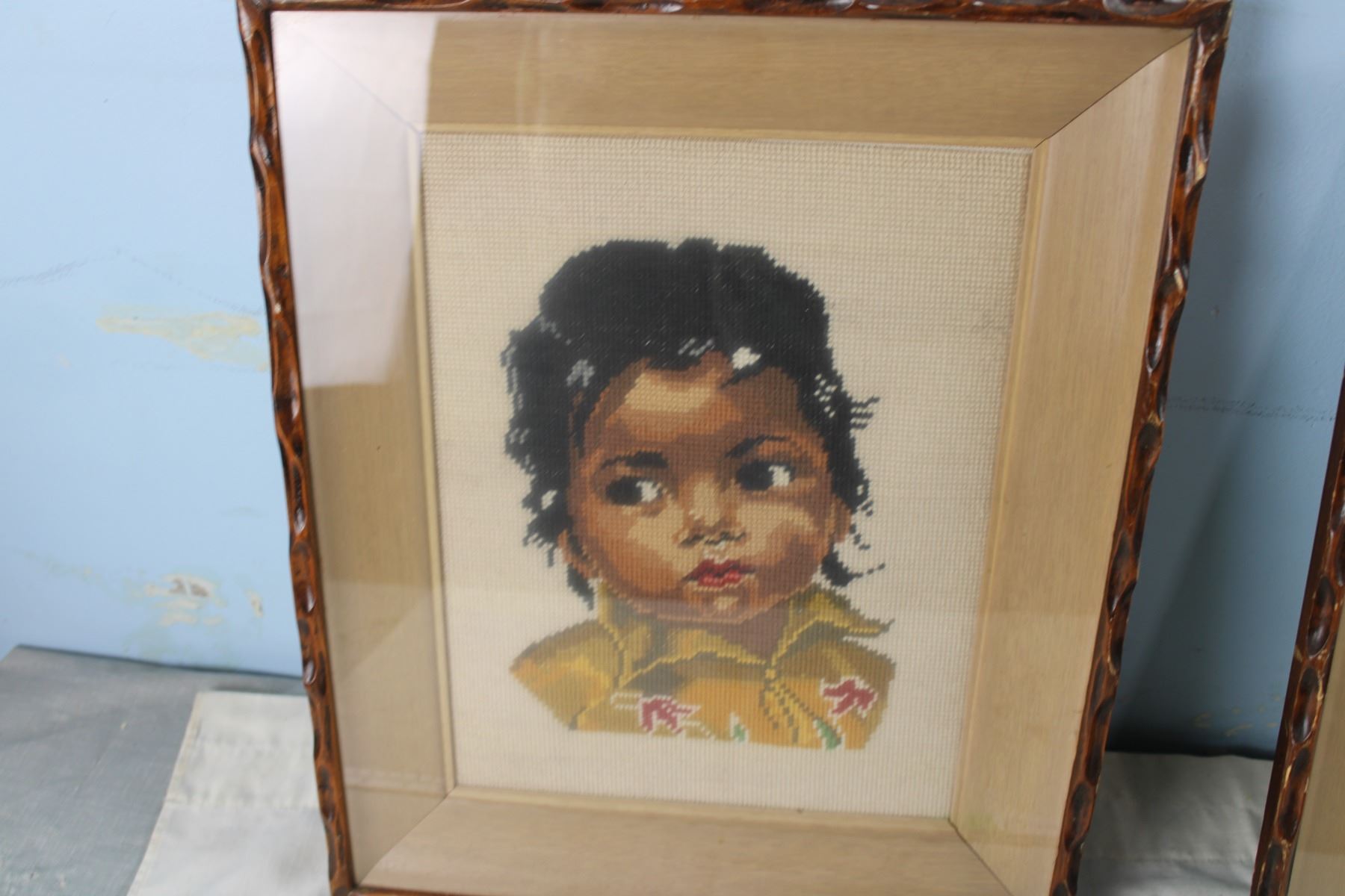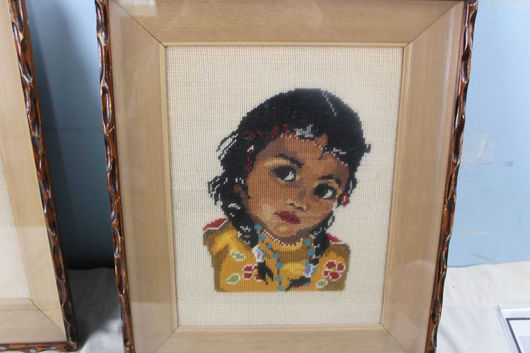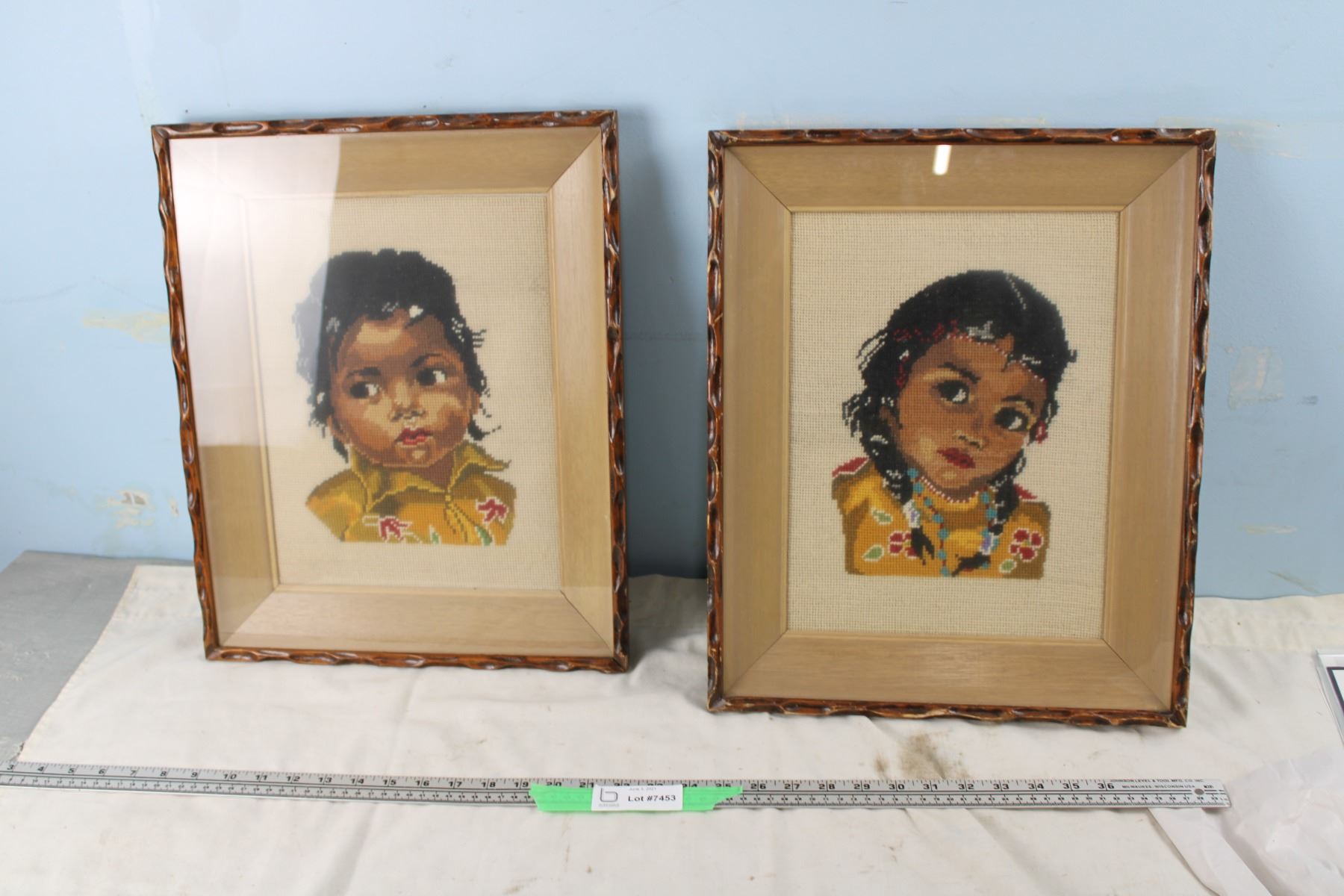 (2X THE MONEY) Native Children Needlework Pictures (14.5" x 18")