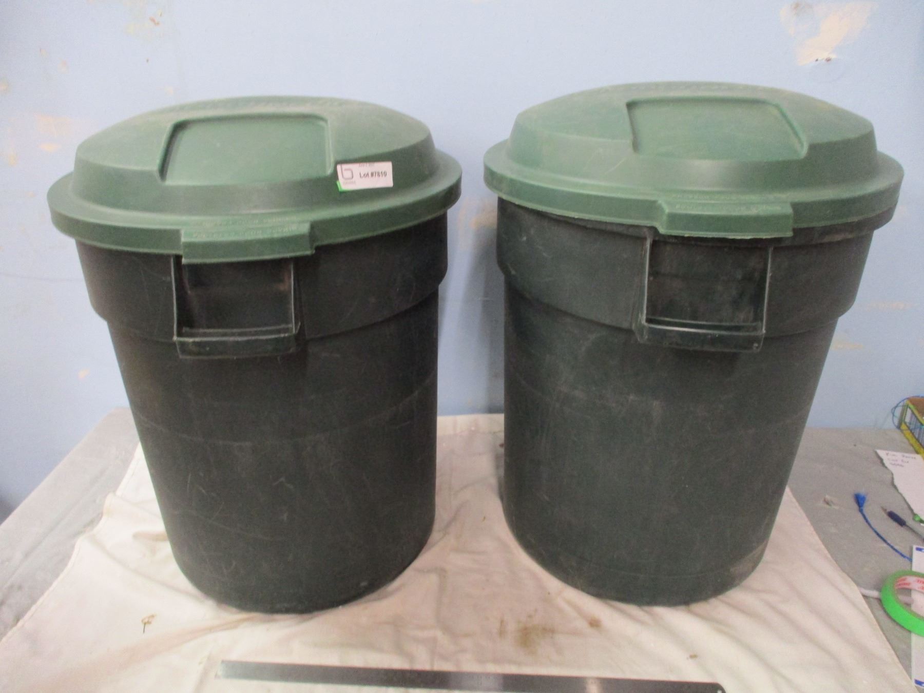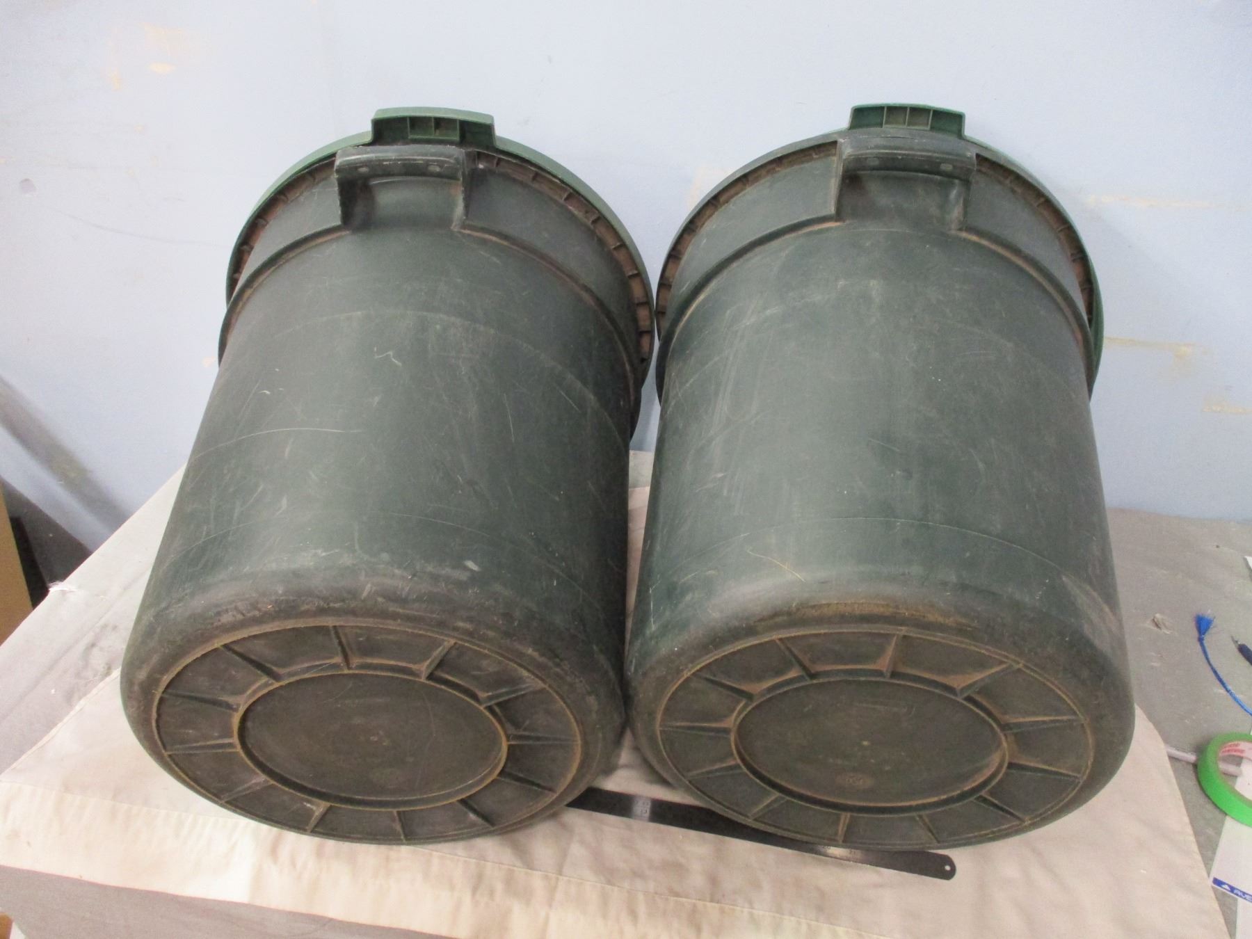(2X THE MONEY) Pair of Plastic Garbage Cans with Lids