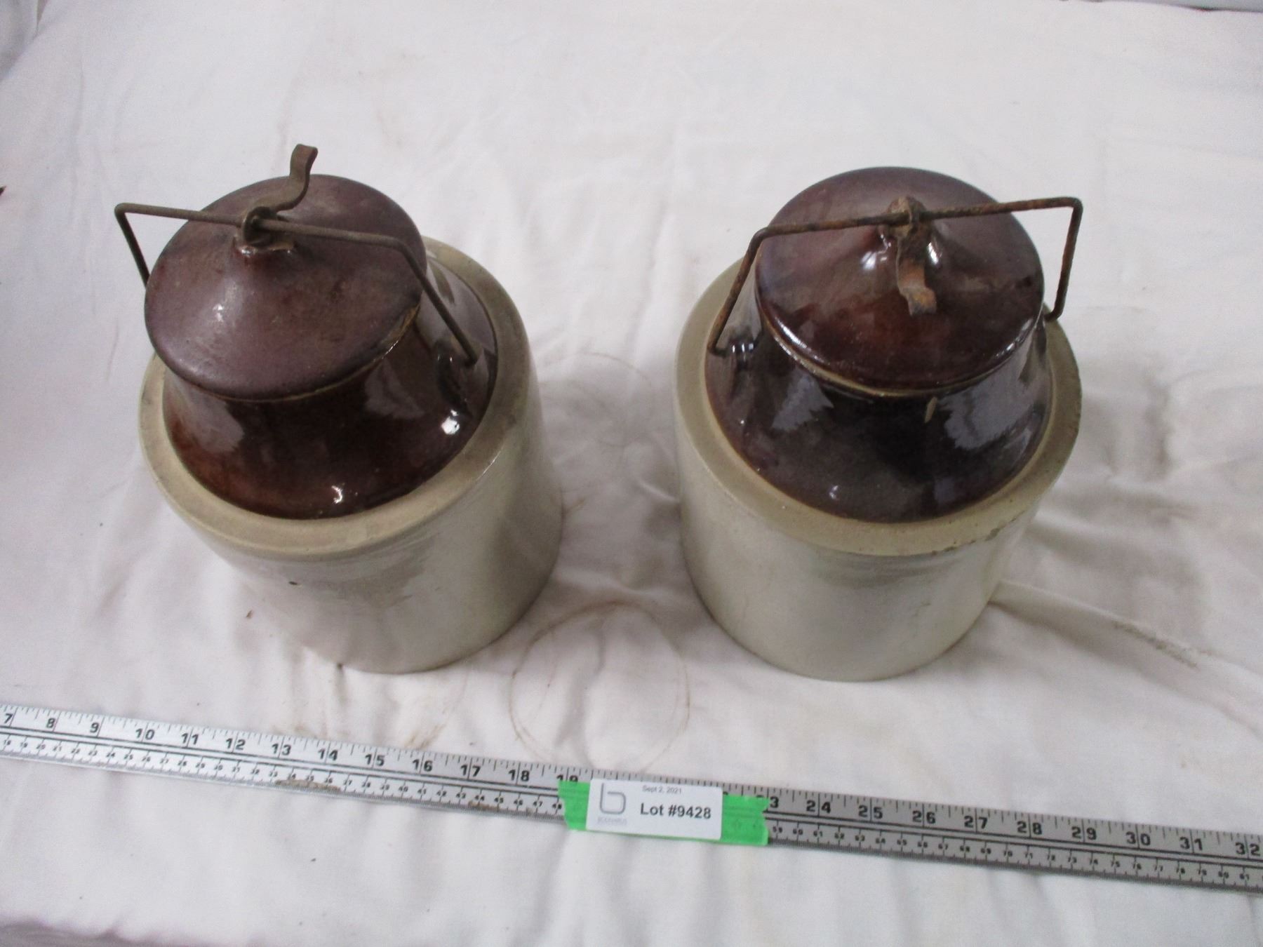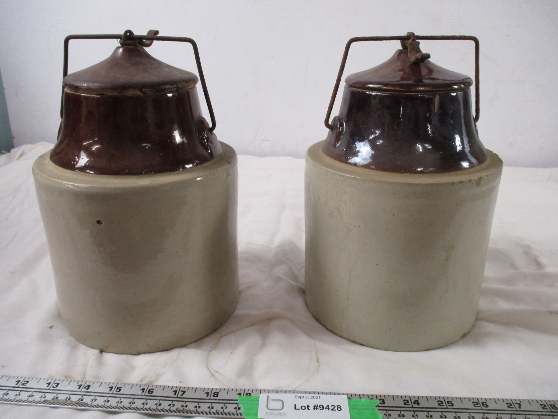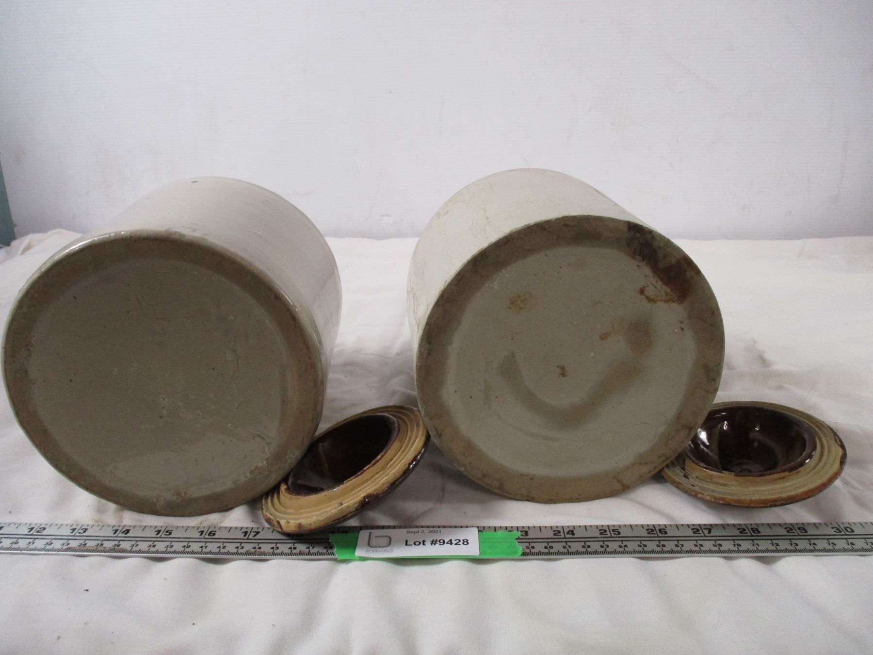 (2X THE MONEY) Pickle Crocks with Lids (2) Stoneware (10" Tall)