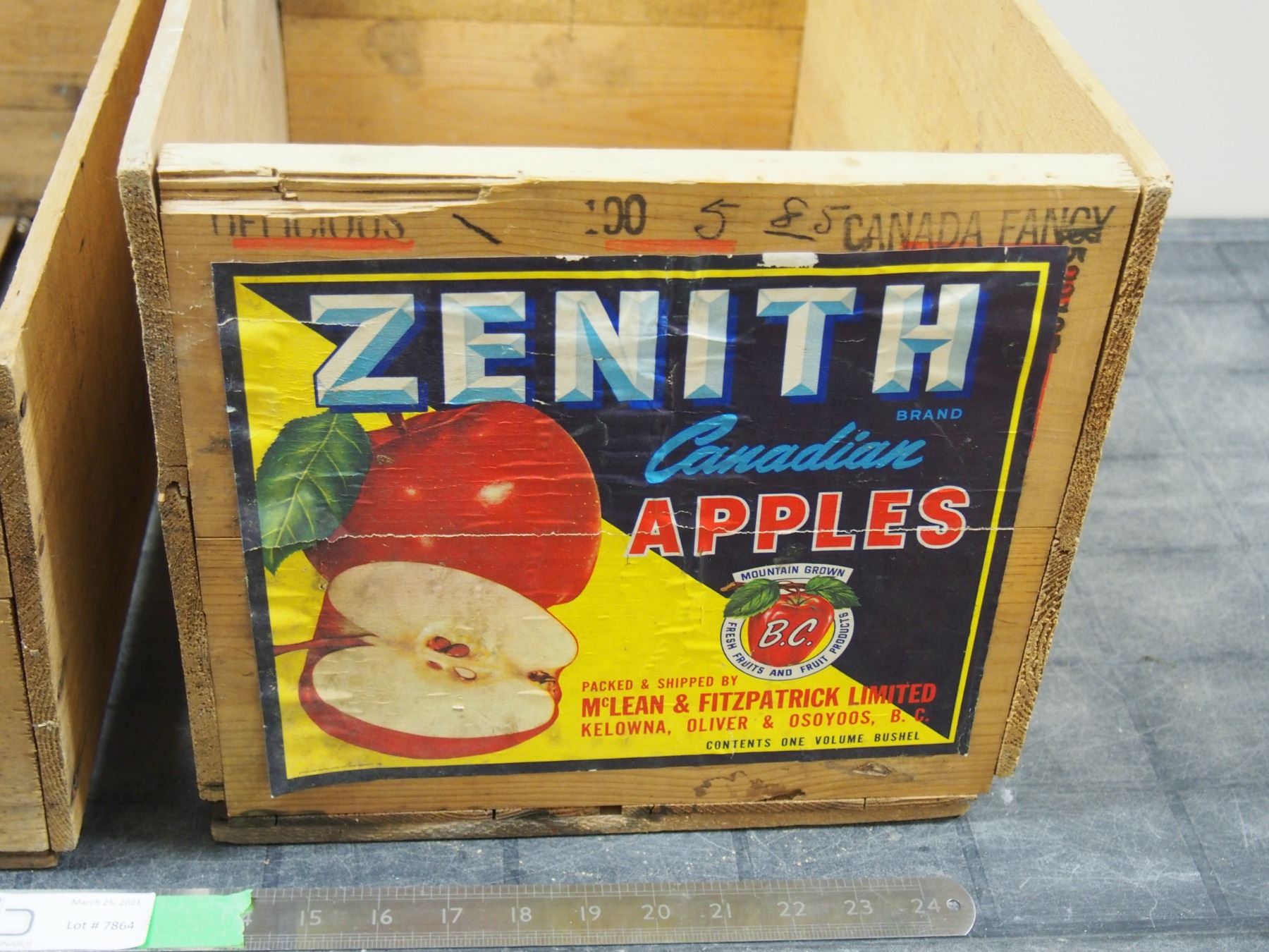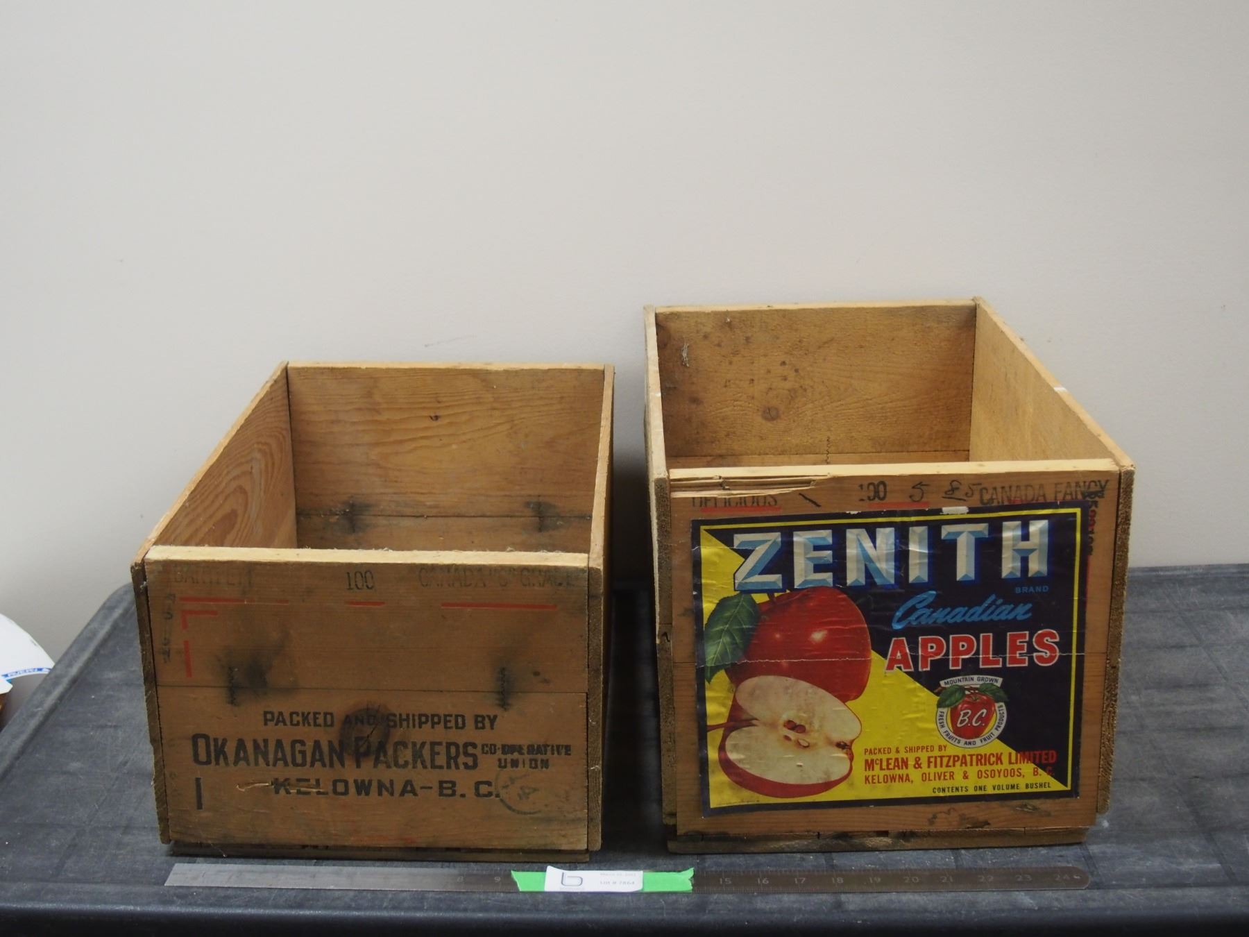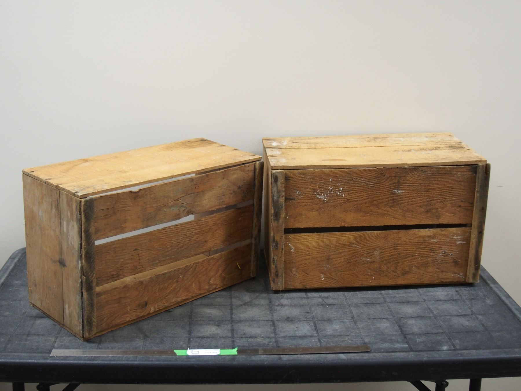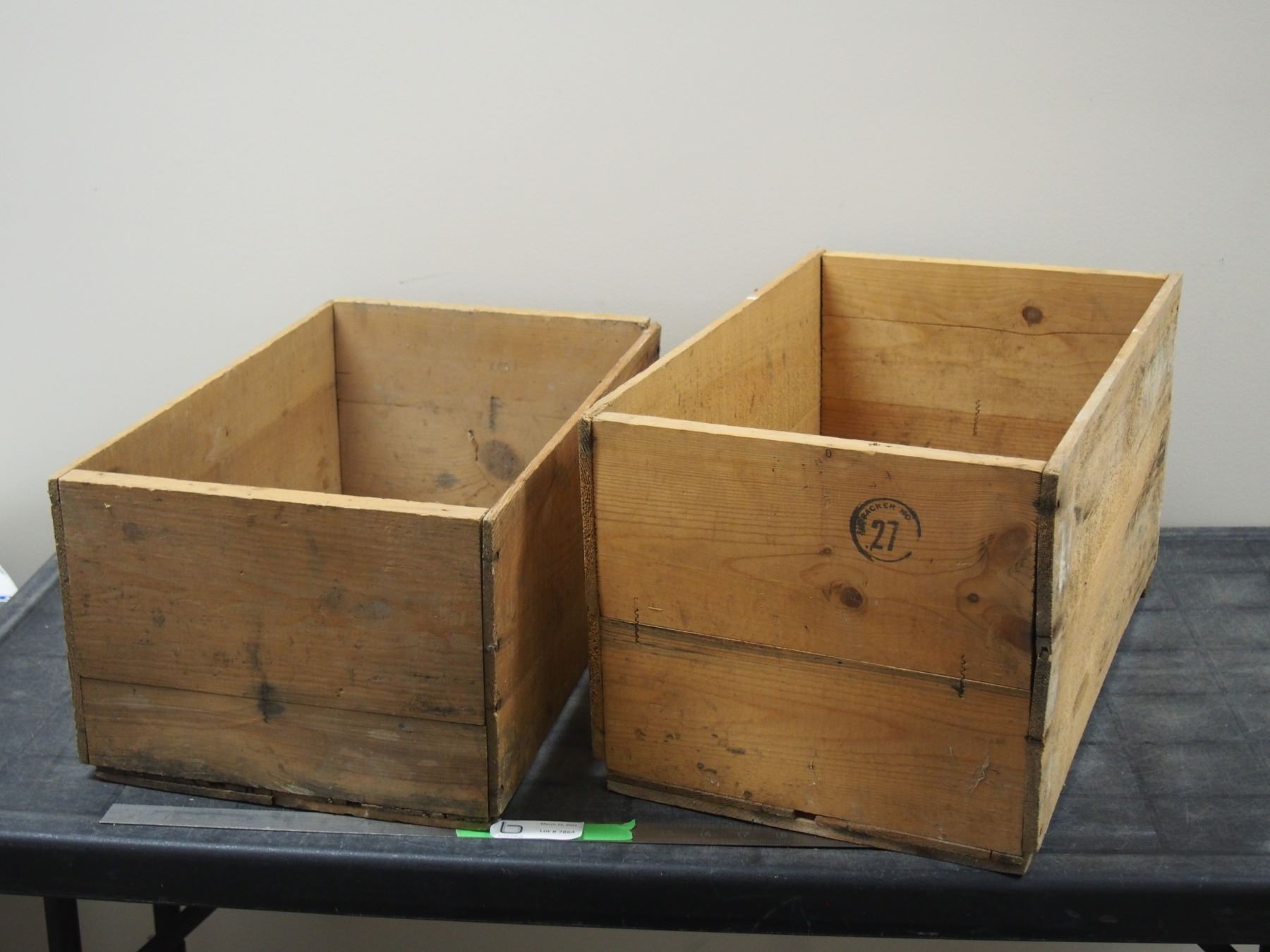 2X THE MONEY/ WOODEN CRATES (1 BARLETT, 1 APPLE CRATE)