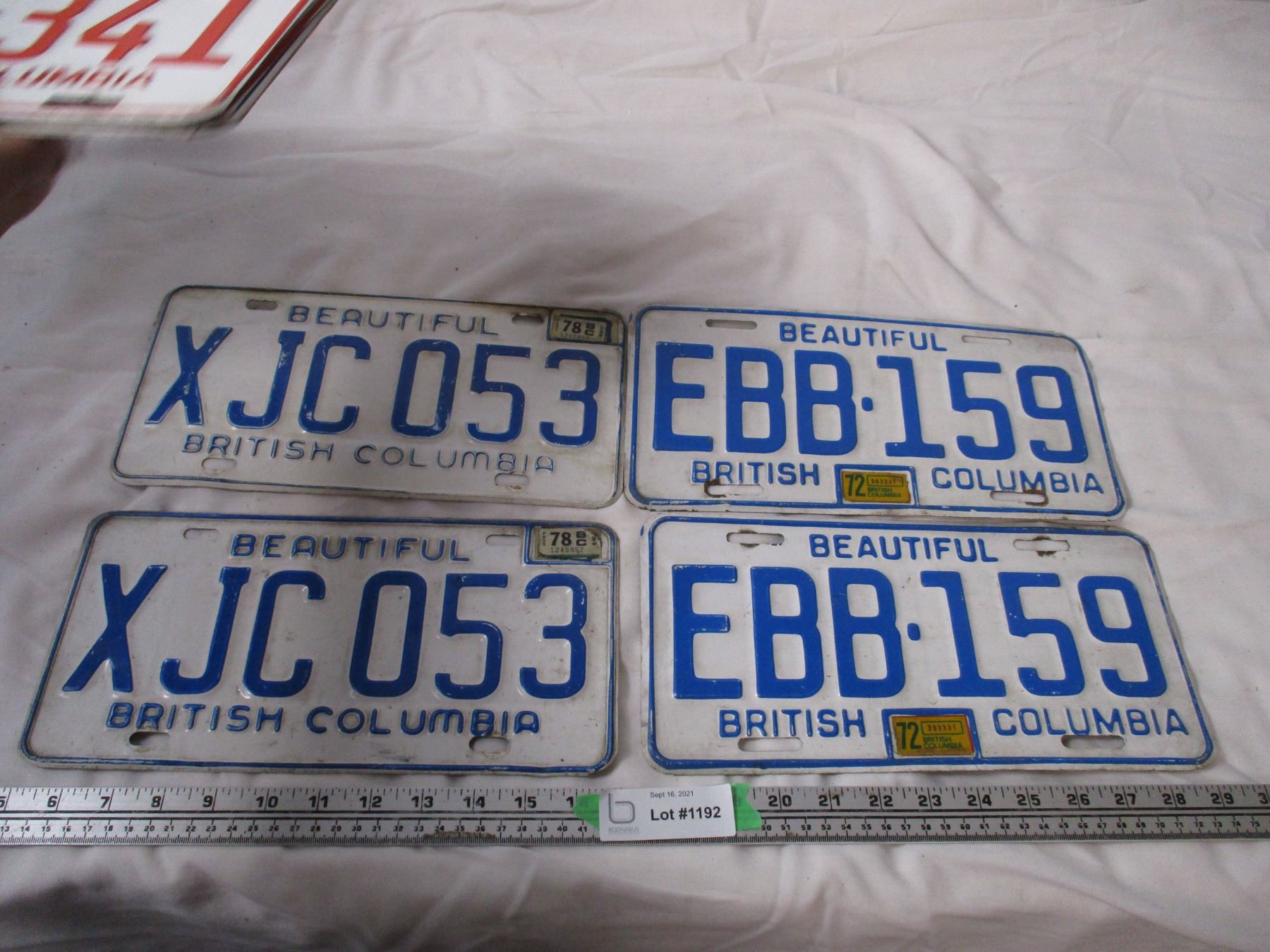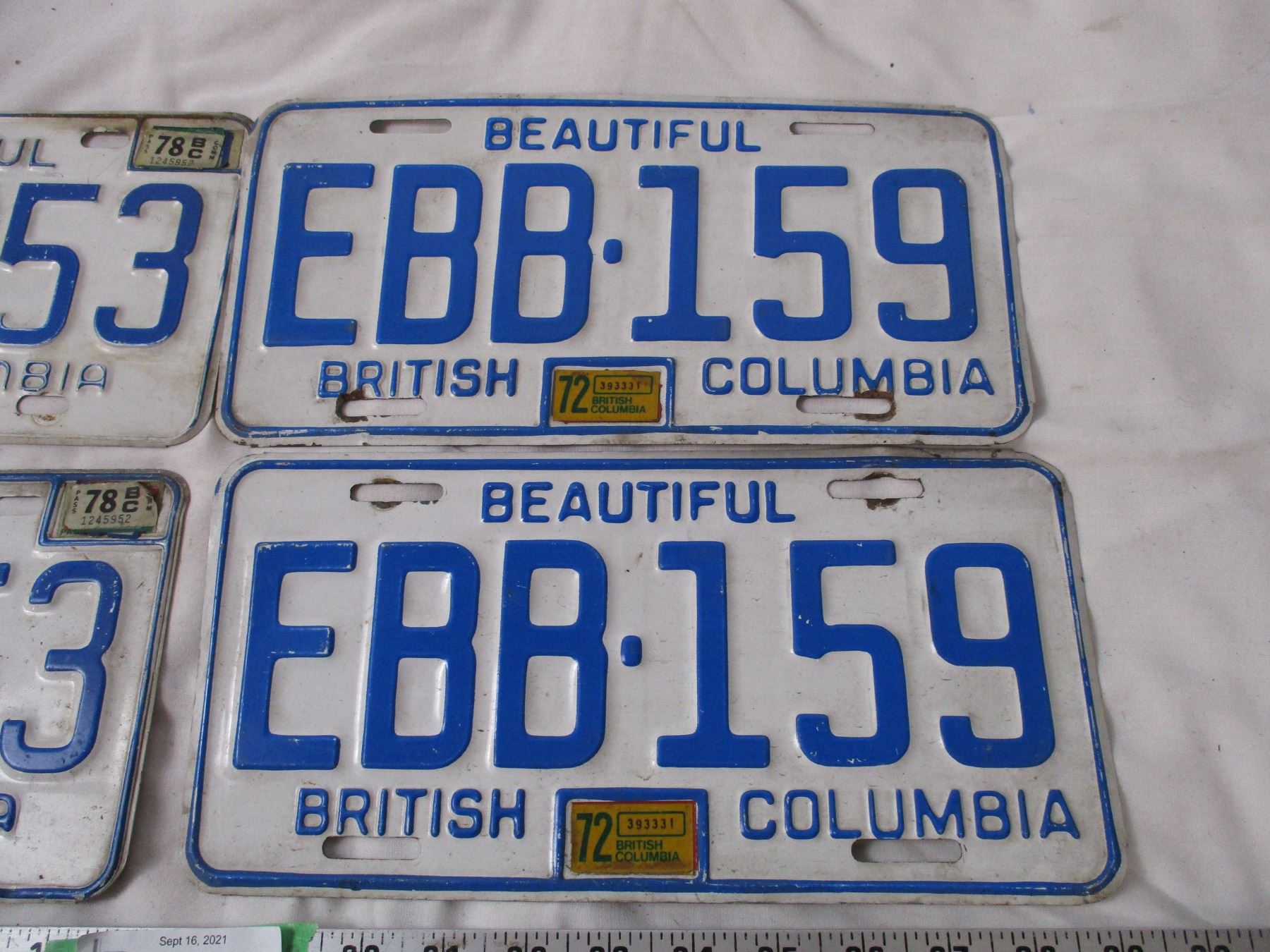 2X The Money - 2 pairs of BC License plates 1972,1978 stickers