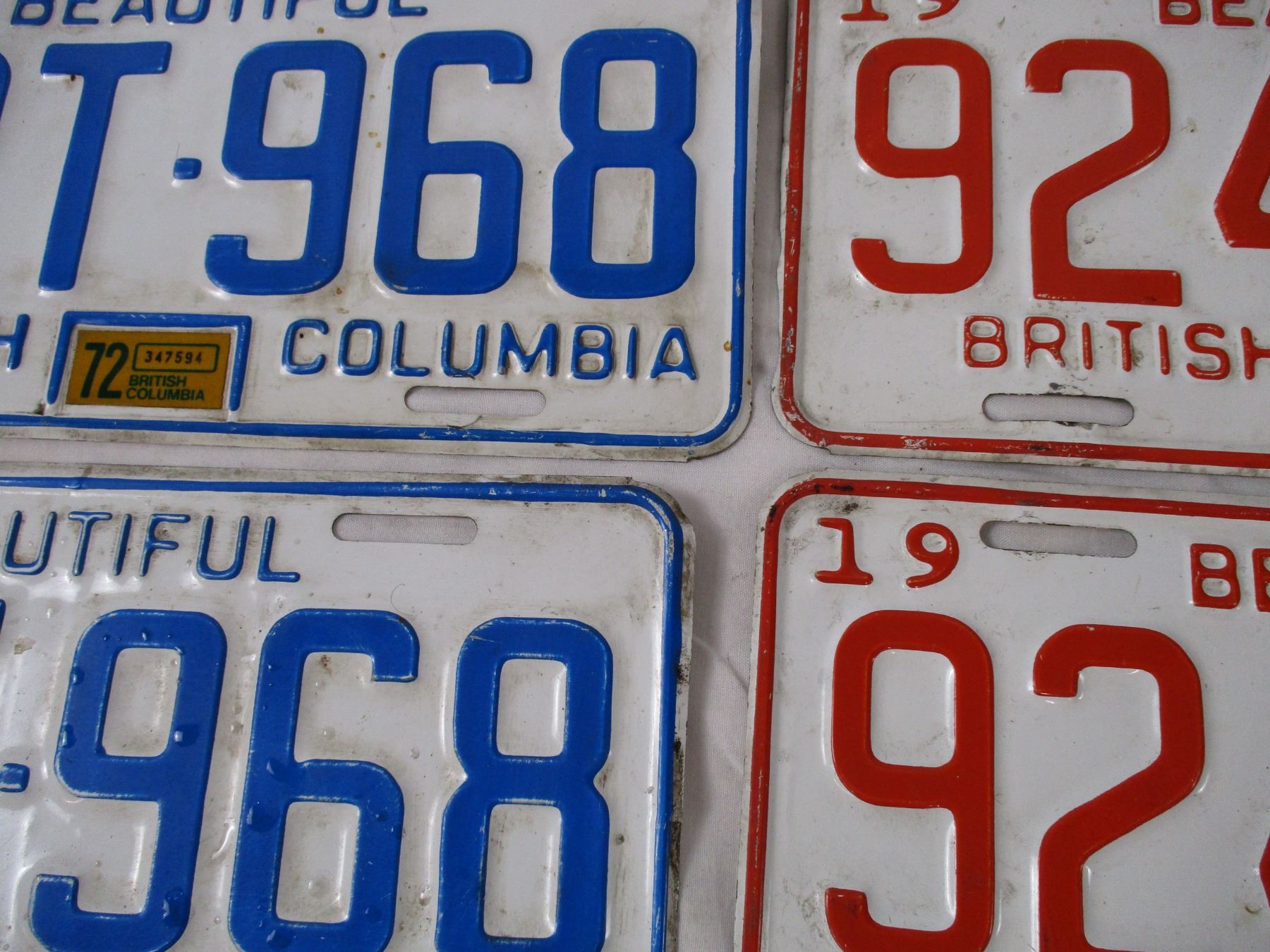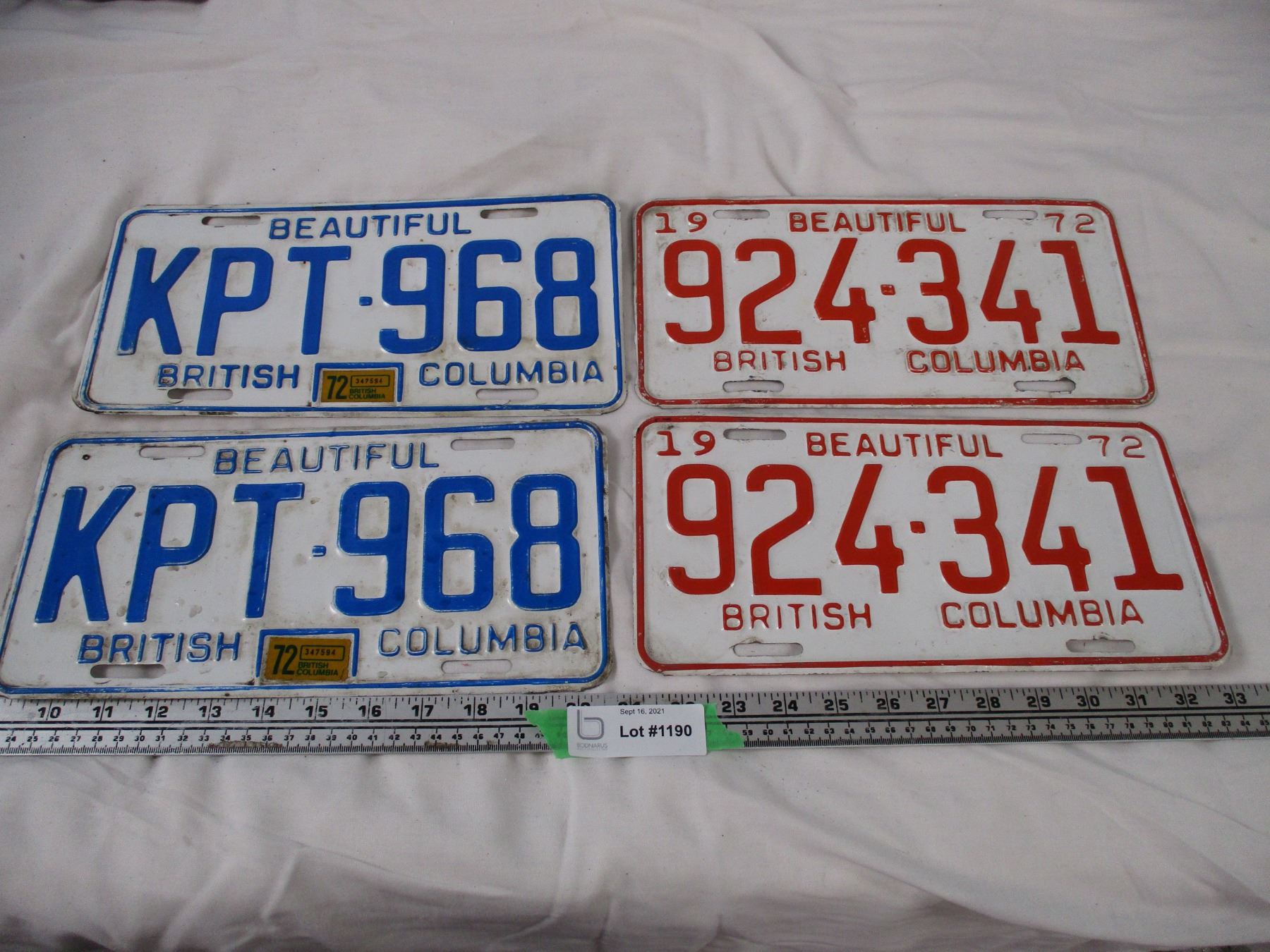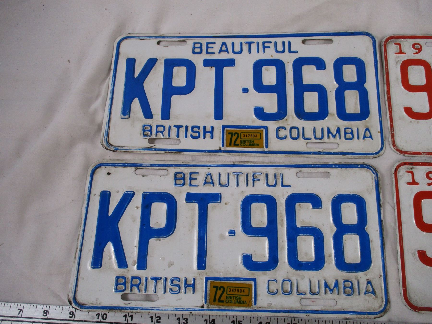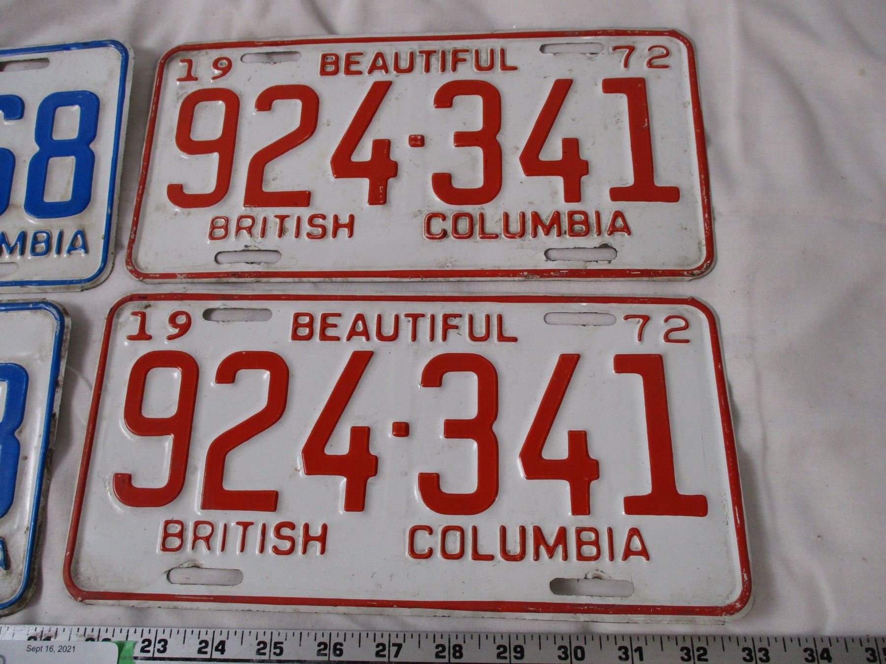 2X The Money - 2 pairs of BC License plates 1972 + one with 1972 stickers
