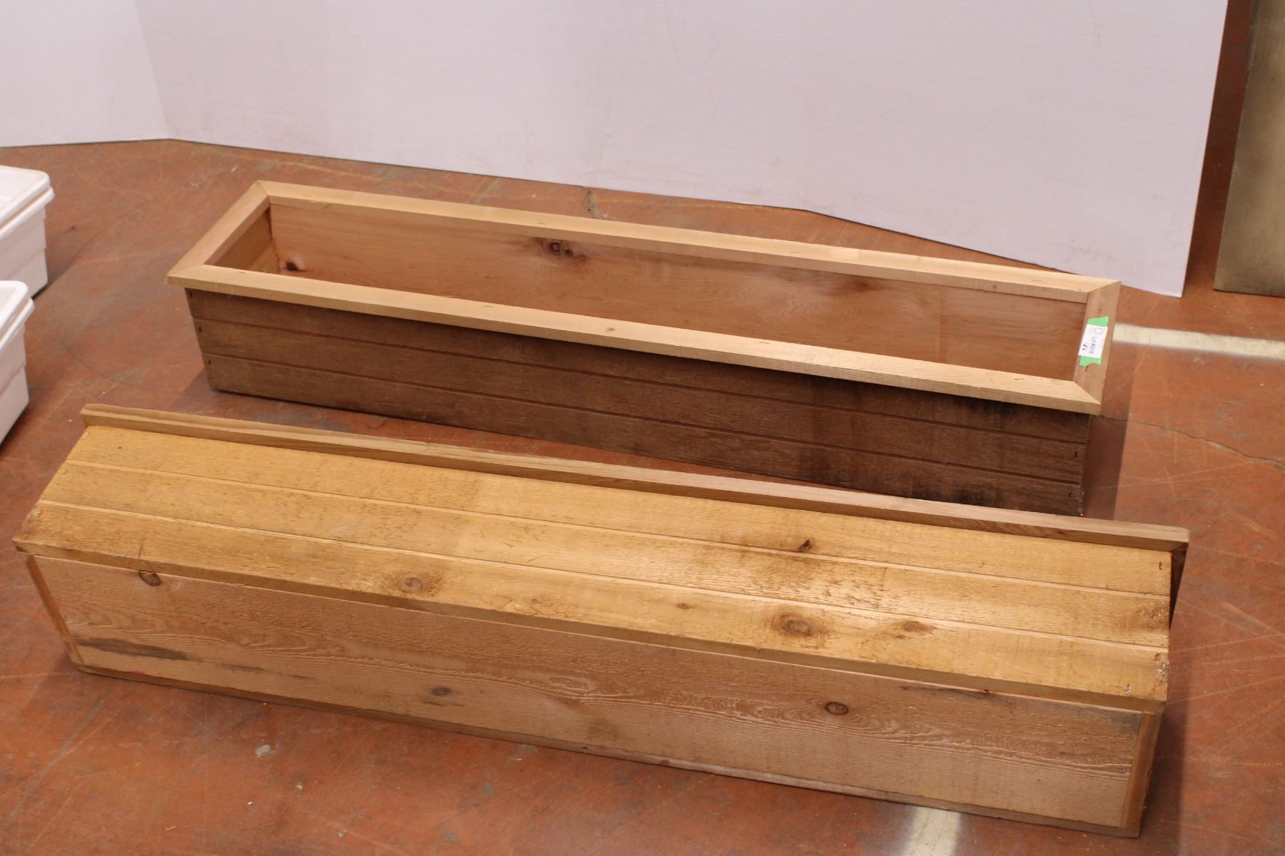 2X The Money - Wooden planters (49" long) inside width 7.5" With plastic planters (32" long, 7" inside)