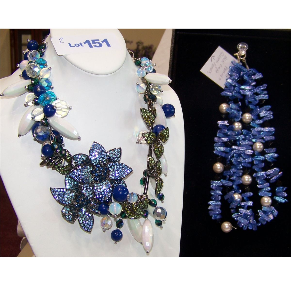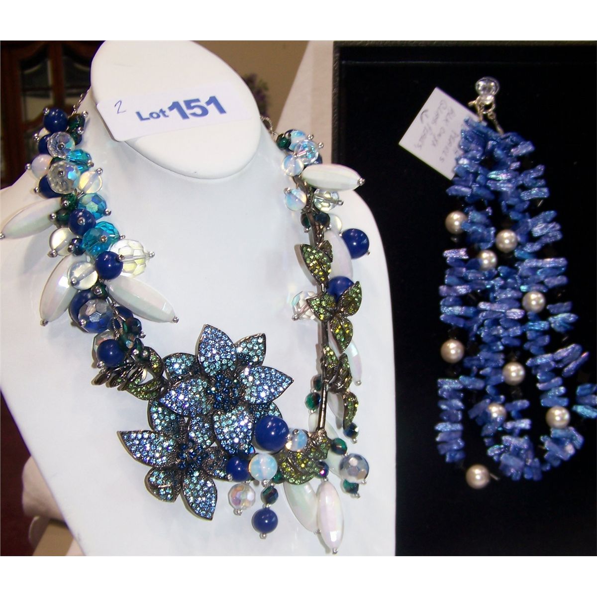 One is Austrian crystal centerpiece, milk glass & Austrian crystal, Lapis & Opaline. The other is blue fresh water pearls, black onyx, & other pearls.