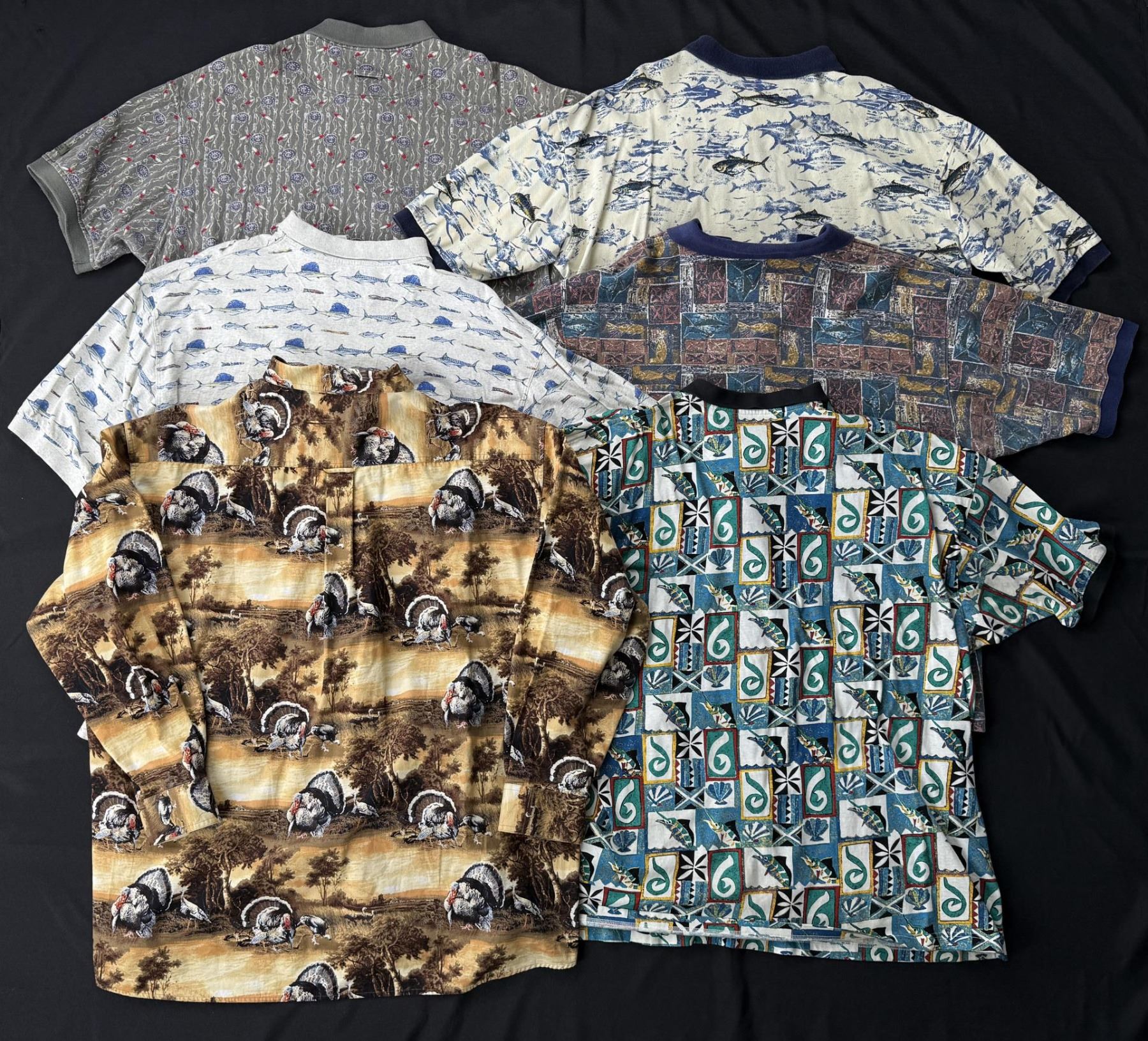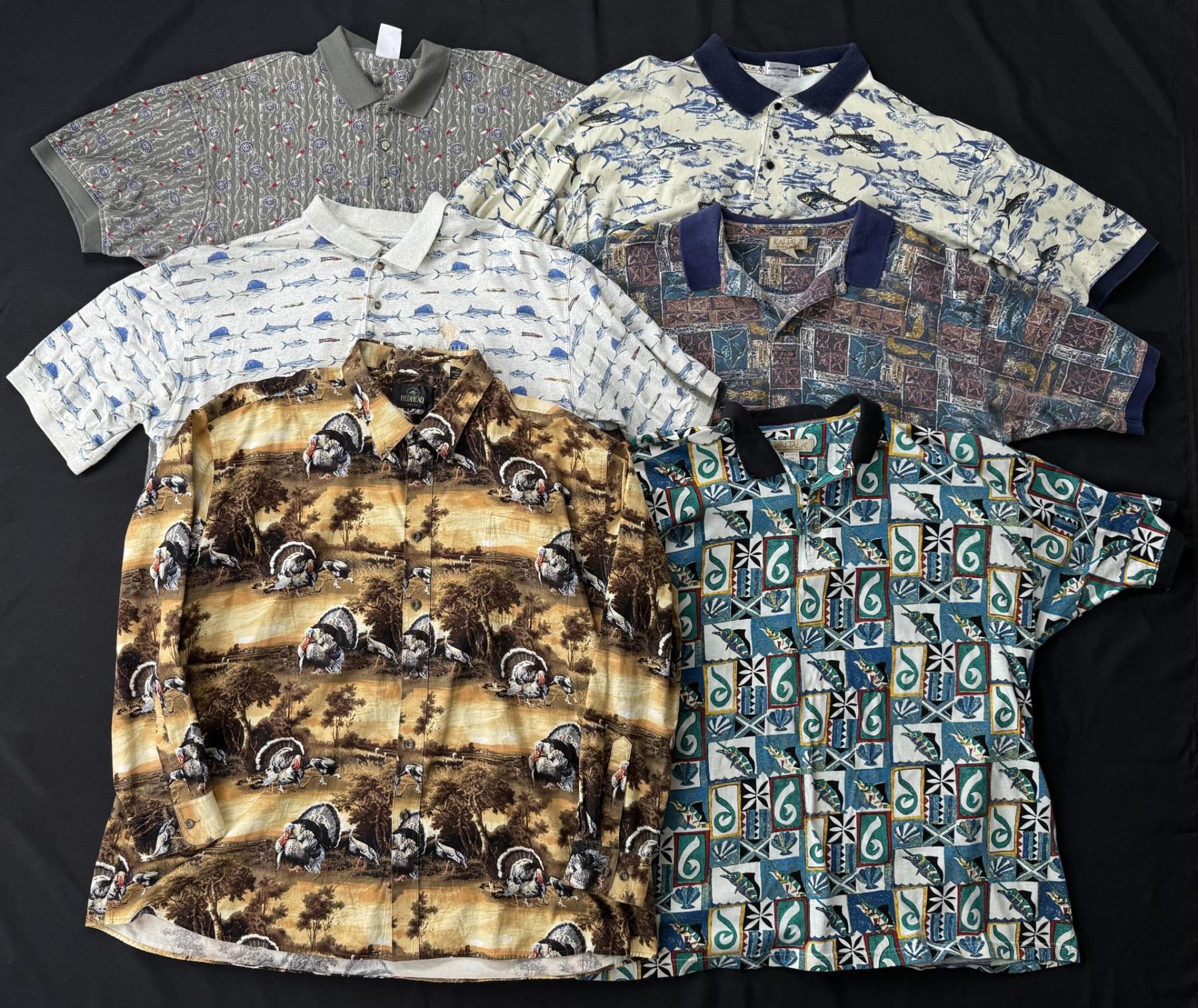 Six total. Various brands. All are 2XL except the Redhead shirt which is 3XL.
