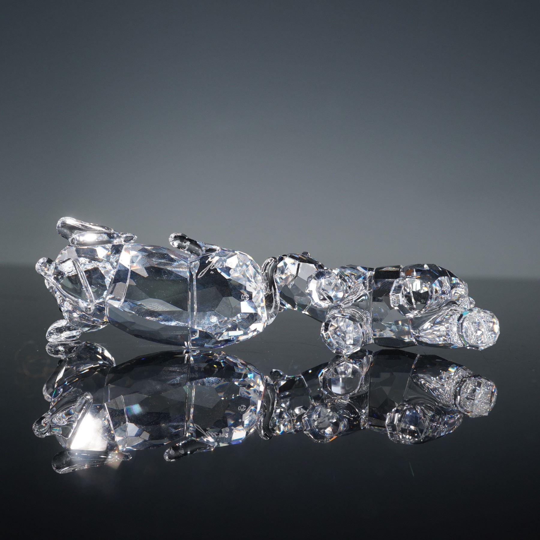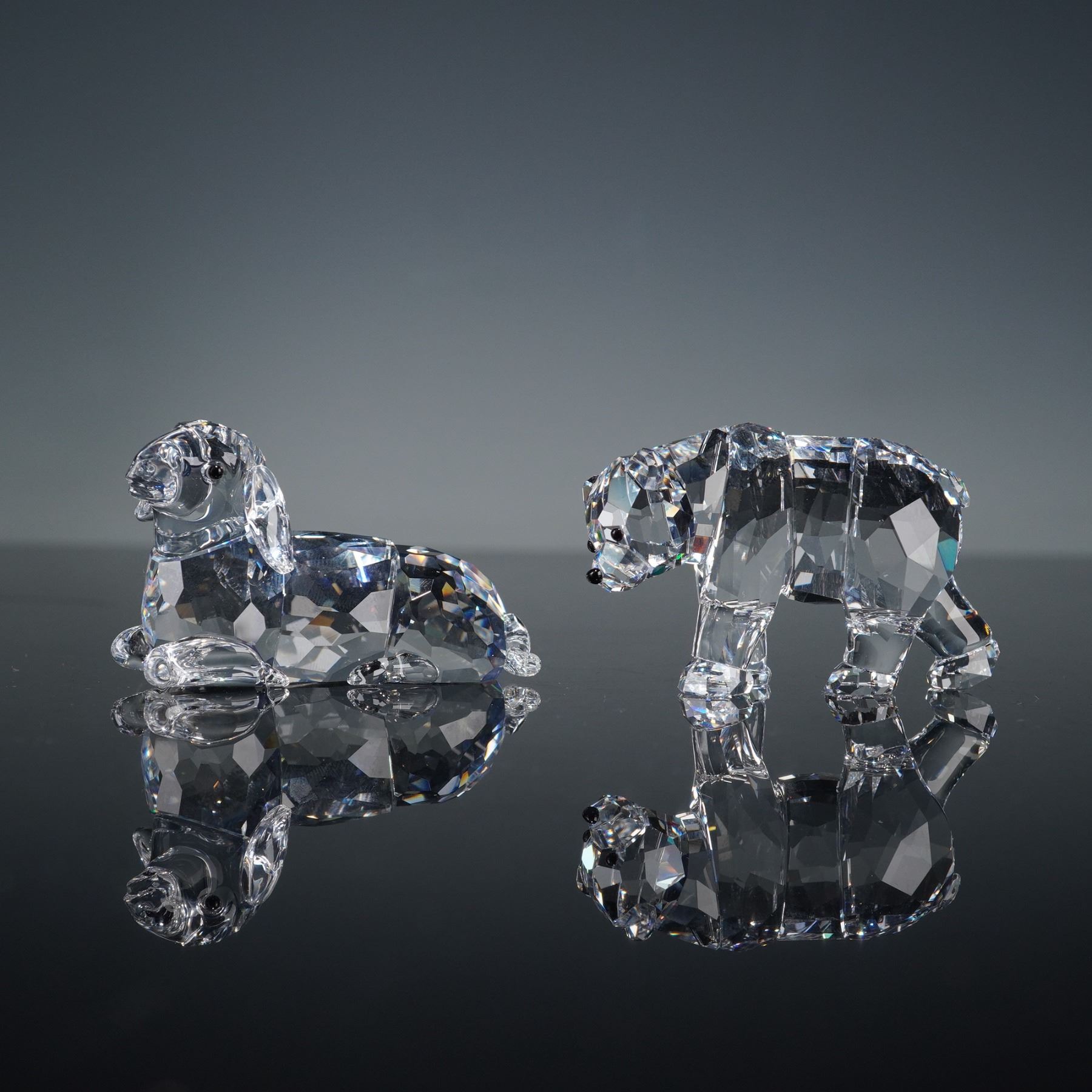 Two crystal figurines including Mother Sheep Lying 631437 and SCS Sister Bear 886308. Both made from clear faceted crystal and finished with jet crystal eyes. Swarovski backstamp. These item have its original boxes.