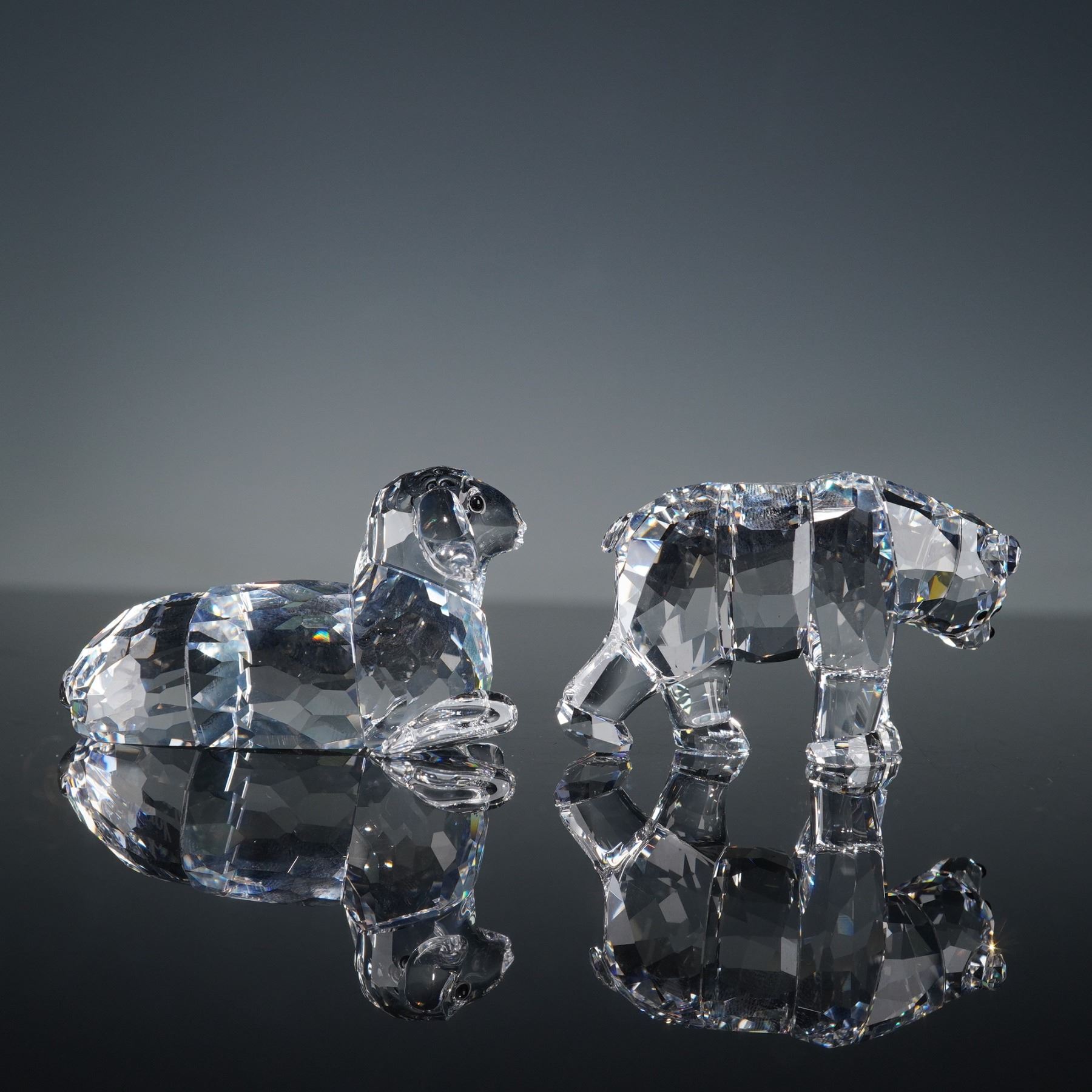 2c Swarovski Crystal Figurines, Mother Sheep and Sister Bear